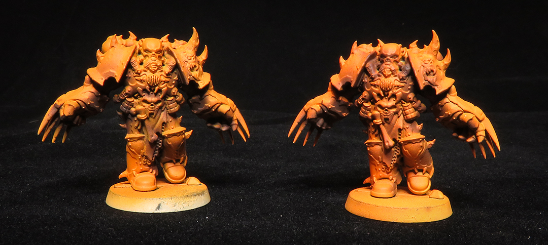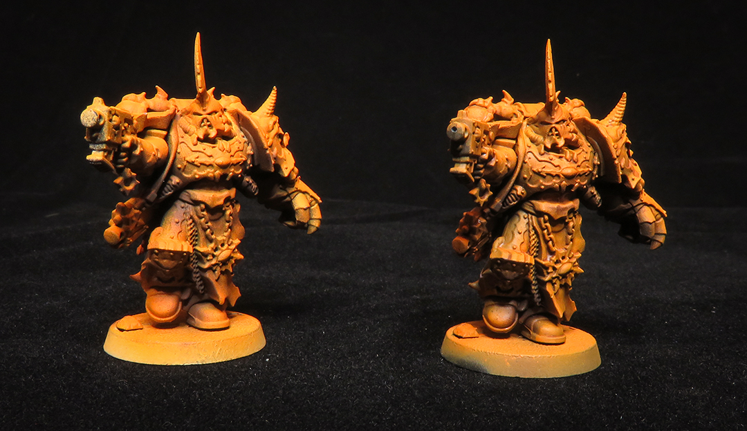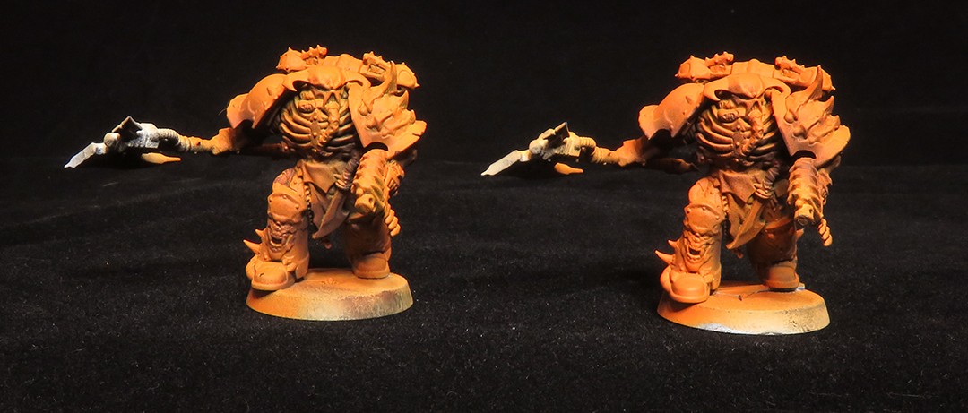 On a side note. I been talking to Spiralingcadaver who is doing Astral Claws and Tiger Claws. He suggested that the Orange Astral Claws could be in transition to RCs. Which gave me an Idea. What if they were lost In the Maelstrom like the SW 13 company thingy. They were lost in the warp before the fall of Badab and recient found. They would be twisted and very corrupted by chaos. Which would explain DV Chosen Models with so much chaos taint.
