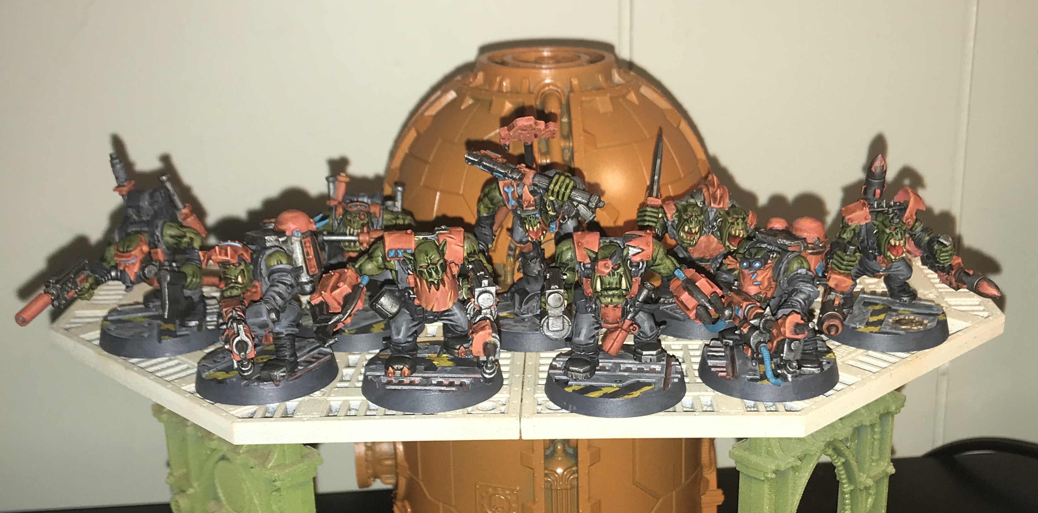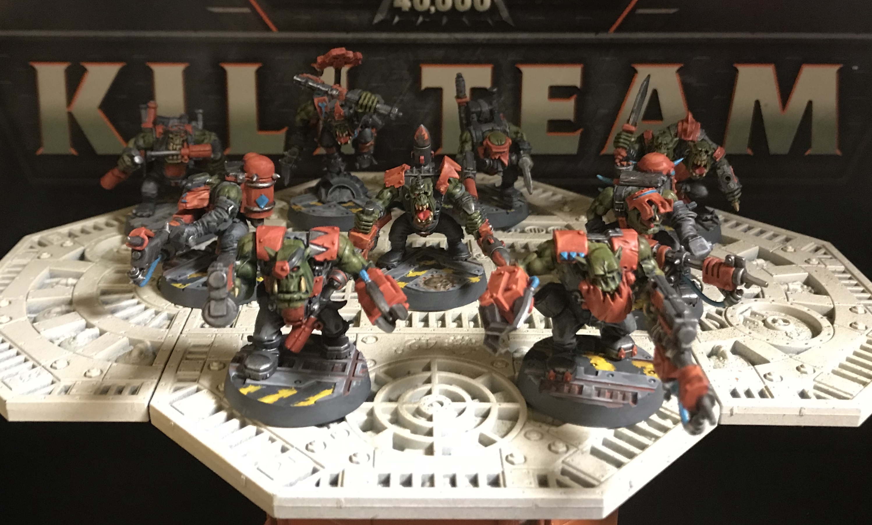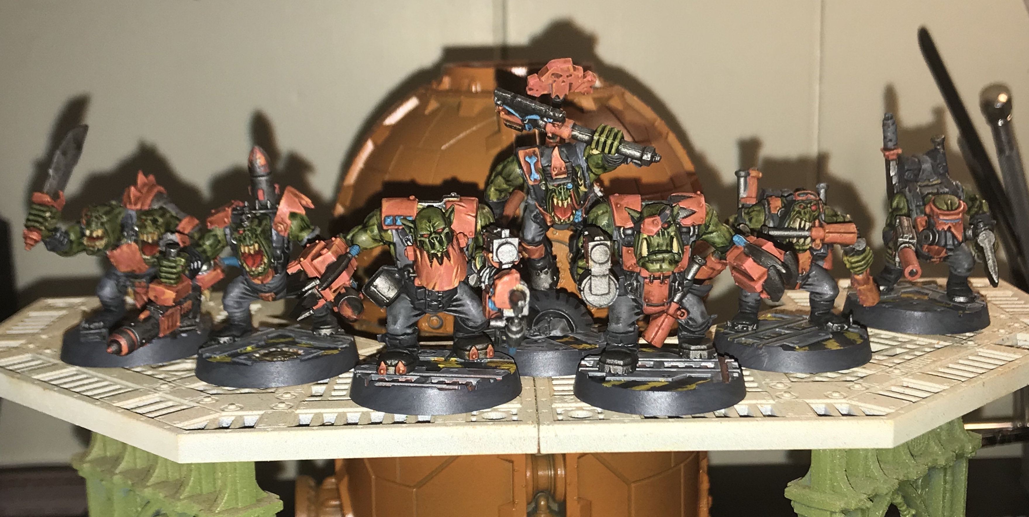 Thanks Monkeytroll. I was able to get them all done and in time for the paint competition. Had to be a fully painted 100 pt kill team. 9 models total. Went with higher pt orks so there would be one or two less to paint. But it consists of.
