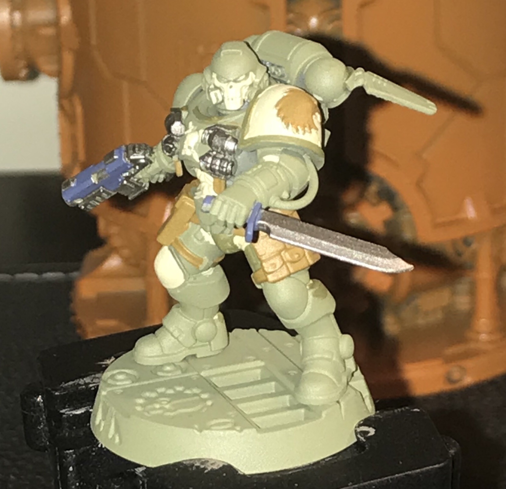 Thanks. I wanted them to be less flashy that my orks and more of a traditional military color scheme. Kinda was thinking how would I paint guardsmen and used that idea for the Marines. Thanks on the sword as well. It took a few tries and some tips from my local club but I think I have it where I want it.