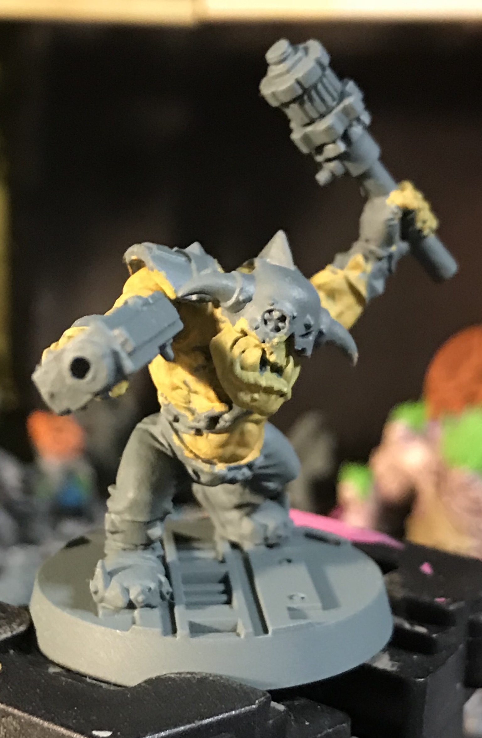 Made some more progress today. Got the last kamando finished. And started some work on the nobz. Got most of the base layer down. But holy crap if gork and mork arnt blessing me right now. I just cannot get in the grove to paint today or do anything else. Been forcing myself to do what I’ve done so far today. Got to get these nobz done and the 2 burnaz by the 18th. Blaaaahhhhhh!