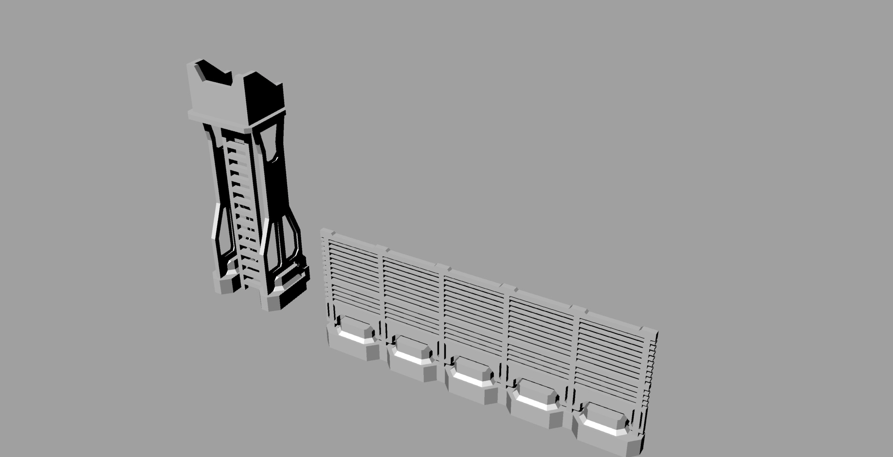 WarMill wrote:Yeah that's the theory: the first phase barricades are dropped in at the start of an invasion or defense to get a defensive line up quickly then second phase packs come in as needed when things have stabilised or some areas need more defense. I'll get a picture of one disassembled to show how big the parts are relative to other parts. I suppose it could always be a single straight set of stairs...