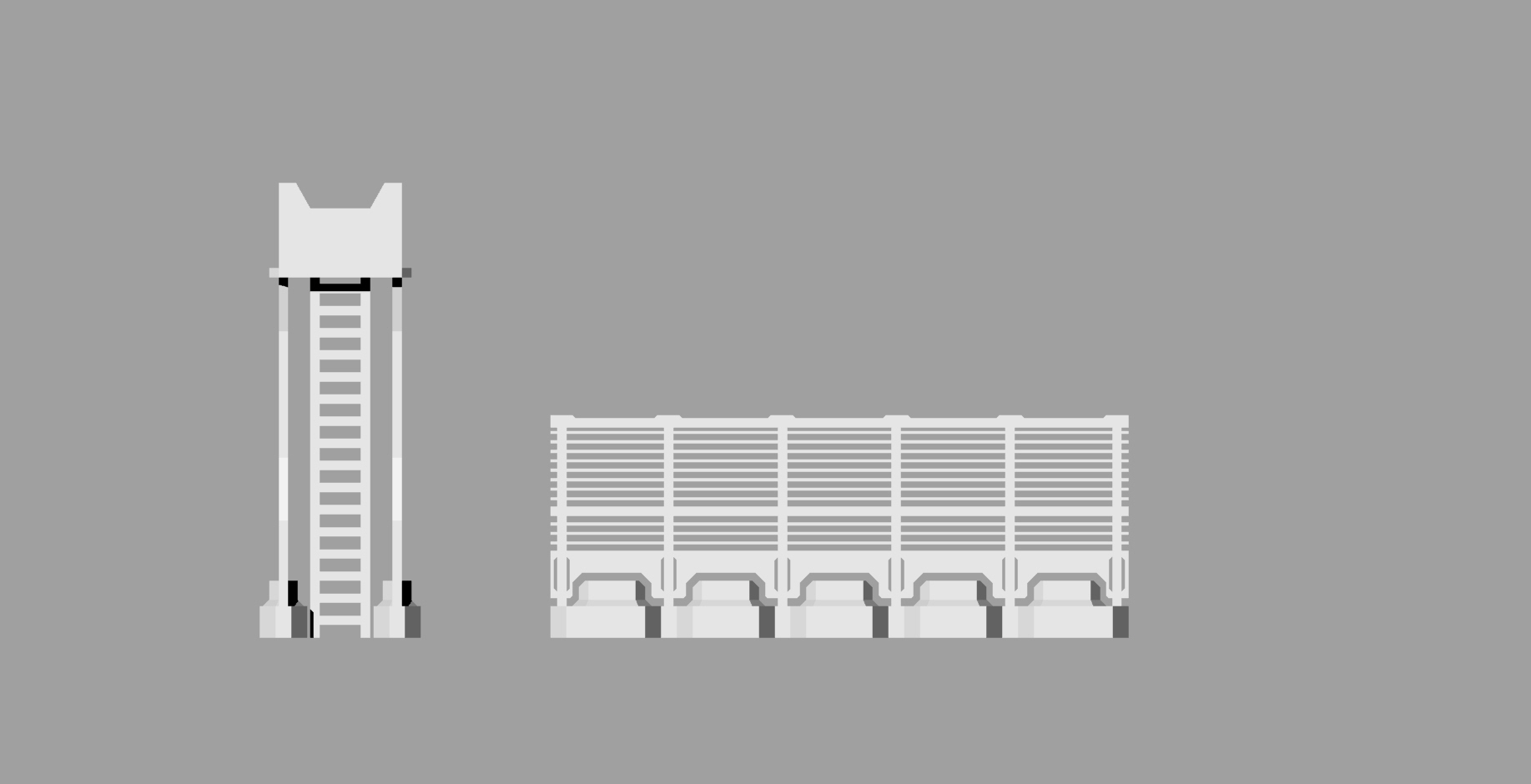 Those look awesome, if you make the deck sections some kind of grill almost like your fence sections you made for the security compound it will have a nice prefab feel to them.
