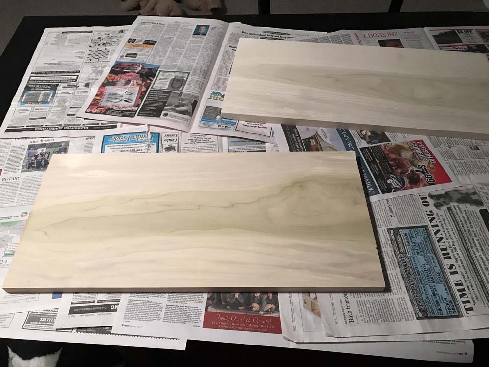 Speaking of which, I DID IT! AHHH it was nerve wracking. But here's the initial phase, spraying the topside stuff (hence why the cabinet is upside down). Hope it sets okay.