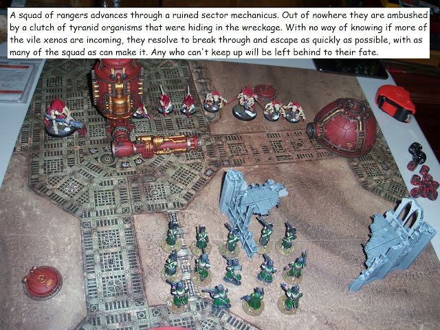 It was a small skirmish between Imperial Guard and Chaos insurgents. Played with grimdark future ruleset against AI. It certainly gave that 40k feel and reignited my fluff-bunny connection with 40k, without demanding a bachelors degree in rules.
