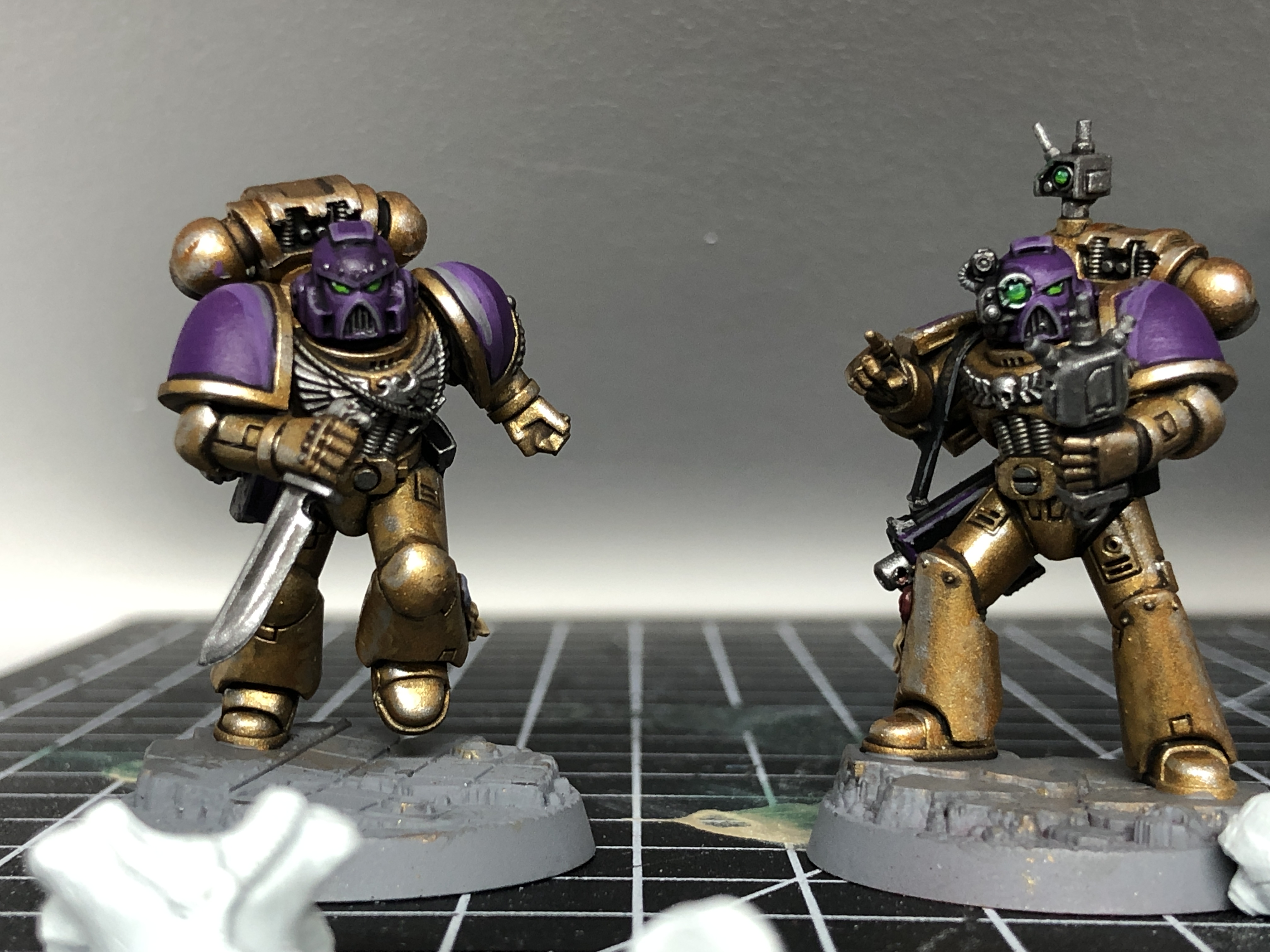Snazzy job on your Space Marine Heroes! The Gold is quite strong and the purple pops against it really well. I love that the plasma gunner has a bionic arm. 40k dark humor at its best. Also nice work on the Imperial Space Marine. I love seeing crisply painted ultras.