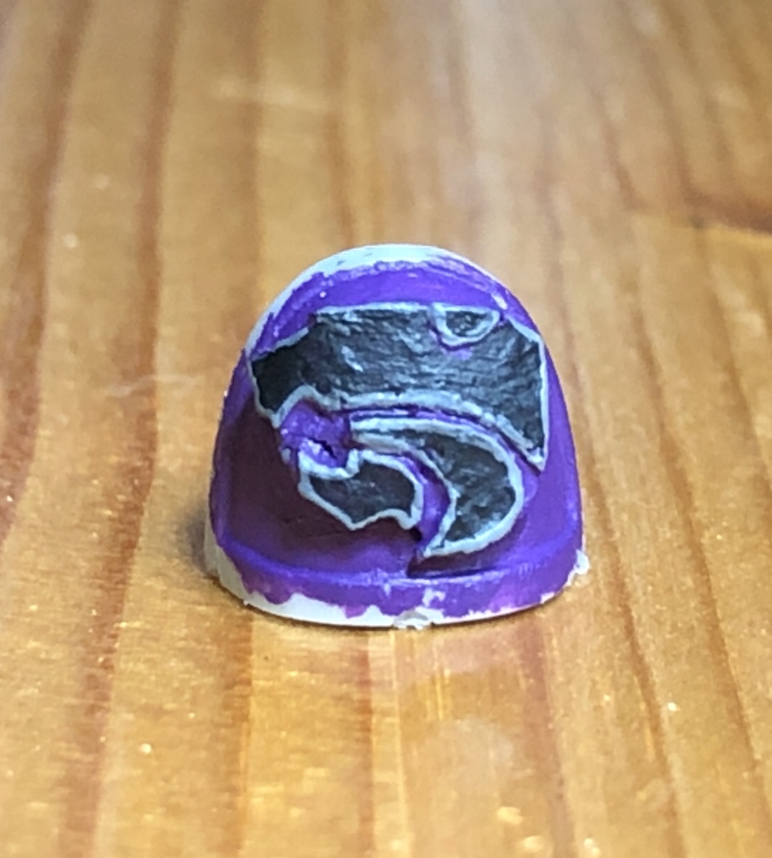This gets my vote. Specifically a black tactical arrow with a white outline. You take your shoulder pad with the white arrow on already and crisp up those lines with some purple around the edges. Then you hit the inside of the arrow with some neat black ink and a tiny brush leaving just a sliver of white outline. That's how I do my all my 1:300 scale balkenkreuz.