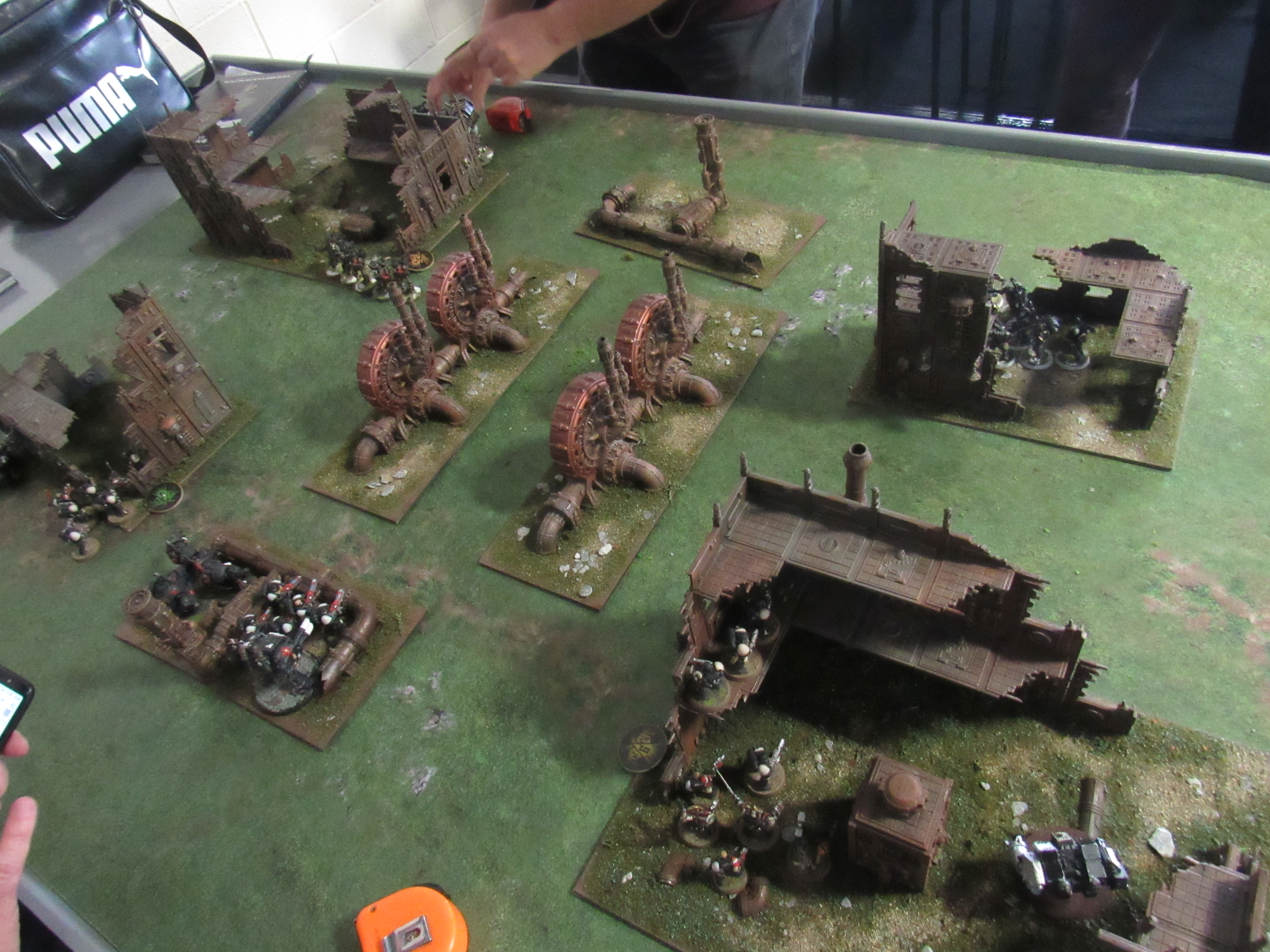 The map really fits well with GWs terrain. The circles on the side could really have been made with the Sector Mechanicus in mind wouldn't the mat predate GW's terrain. I also found out that standard tin cans have exactly the dame diameter and are only a few milimeters shorter that the Feratonic Incinerator.