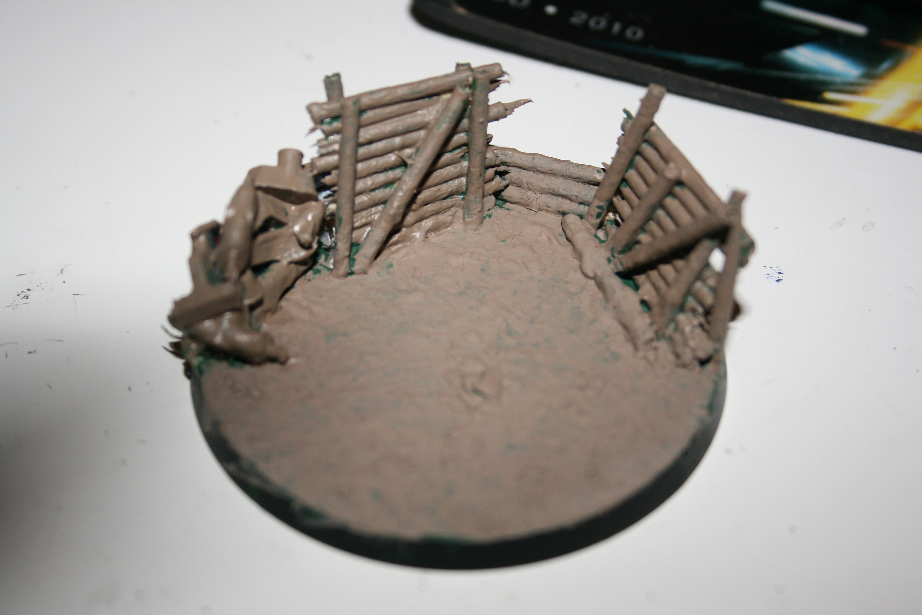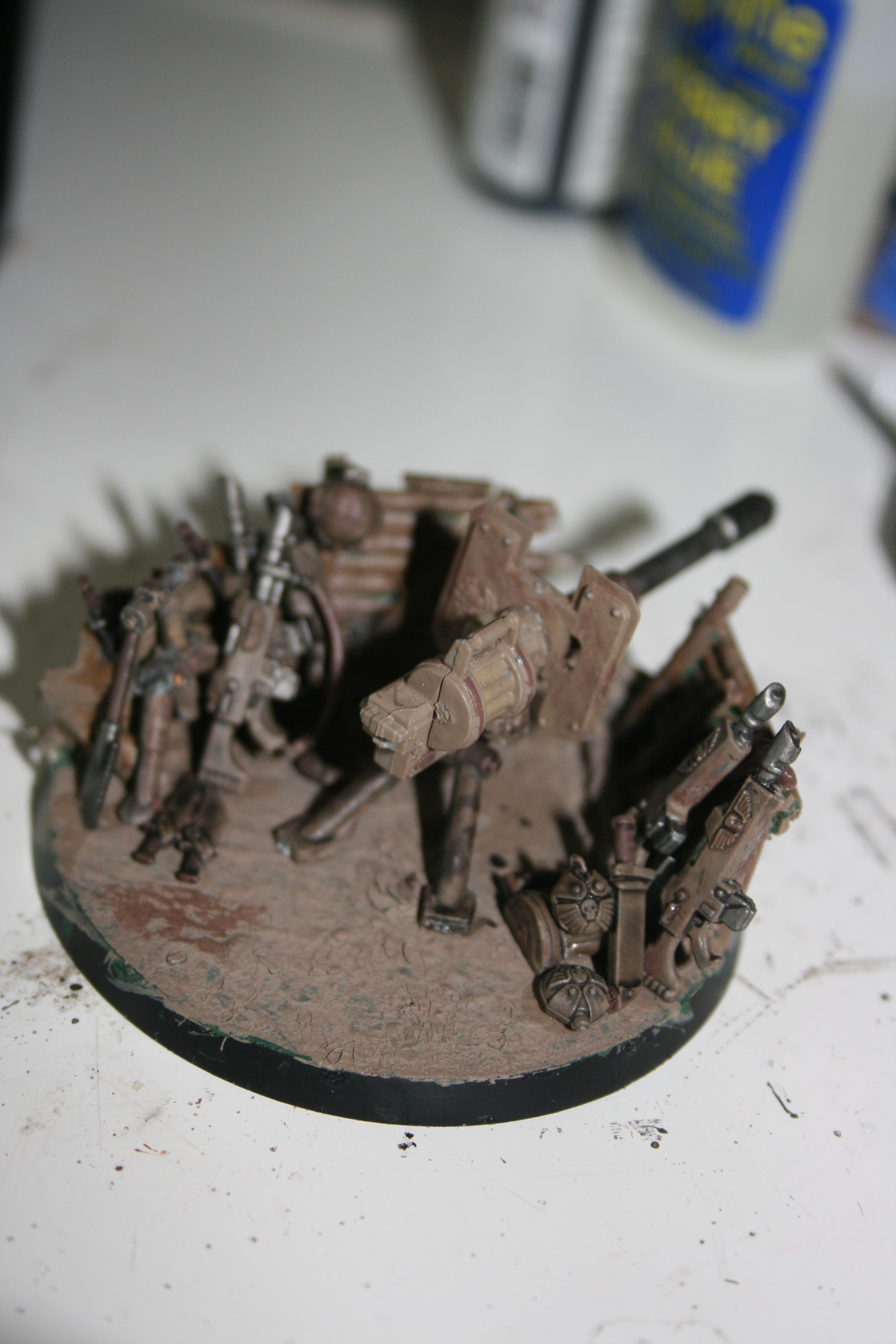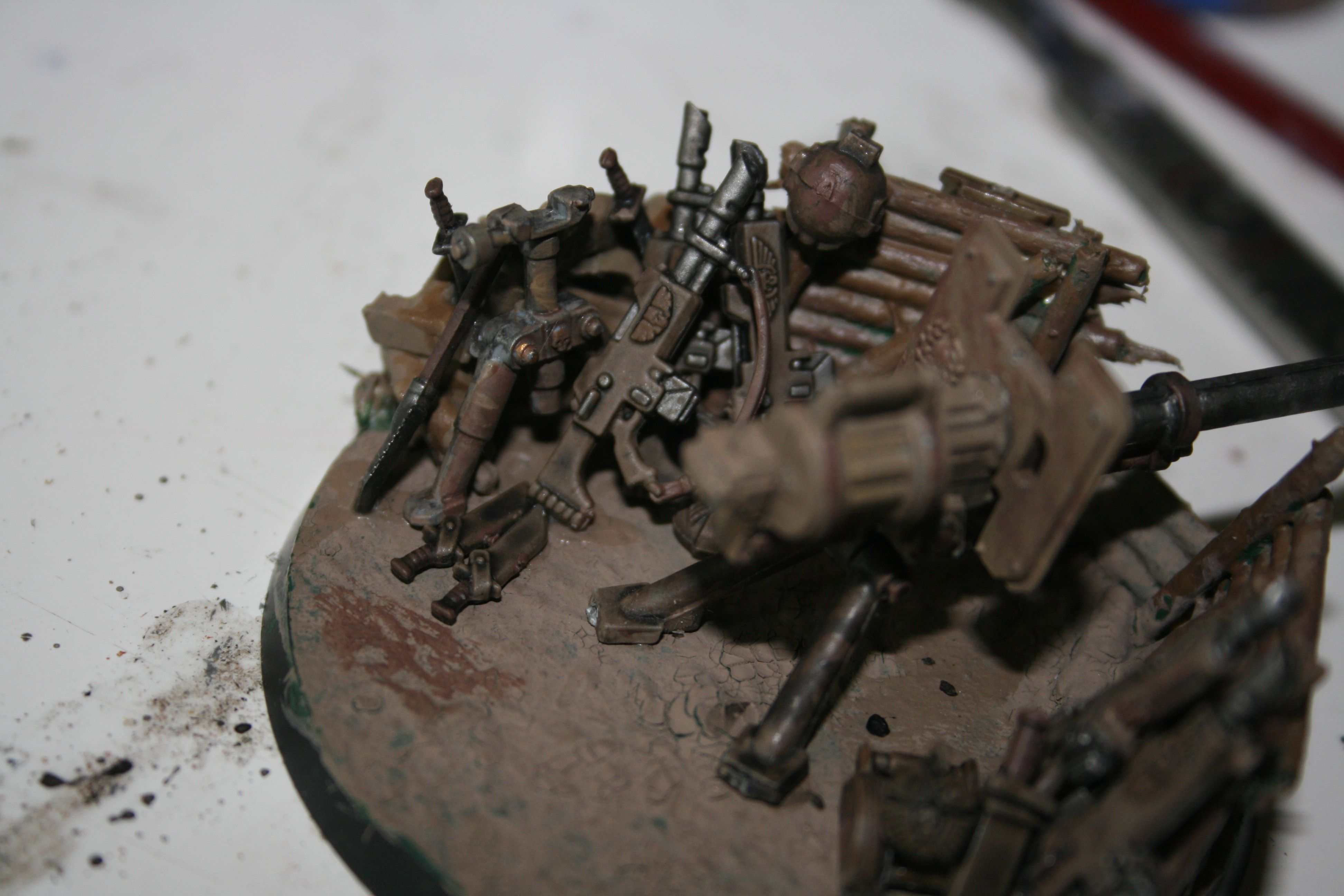 and a base incorporating a dead guardsmen gear and rubble from wrecked tank track.