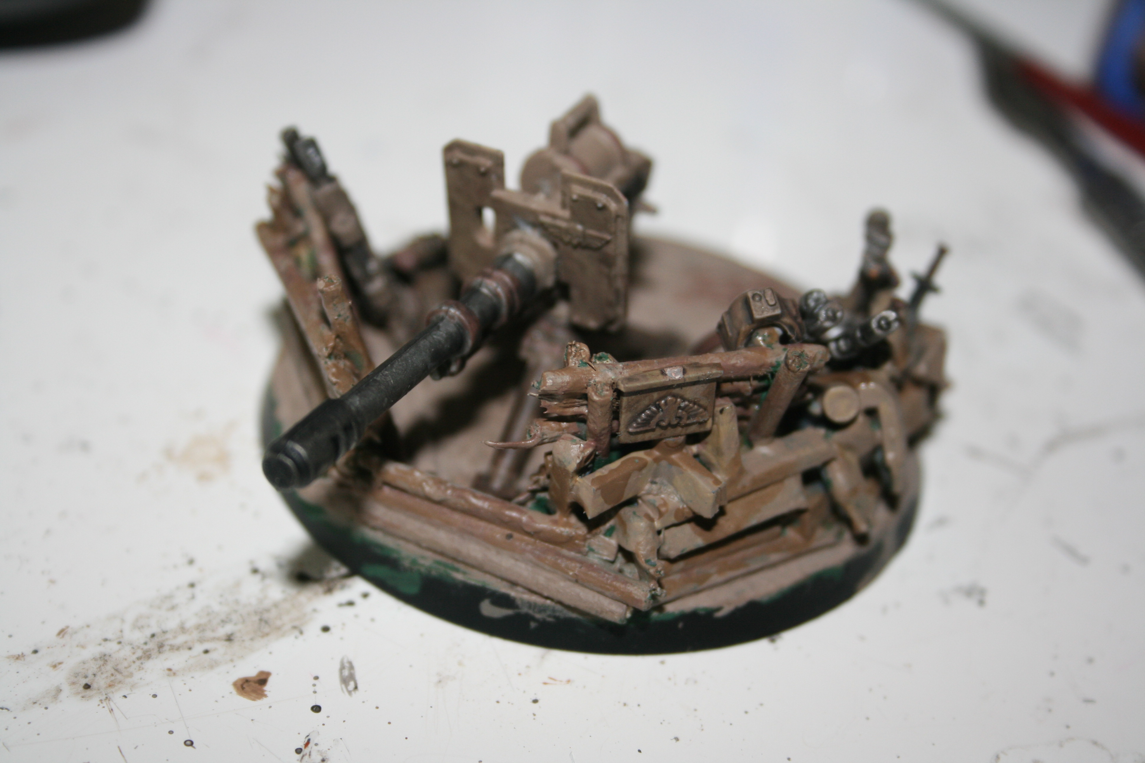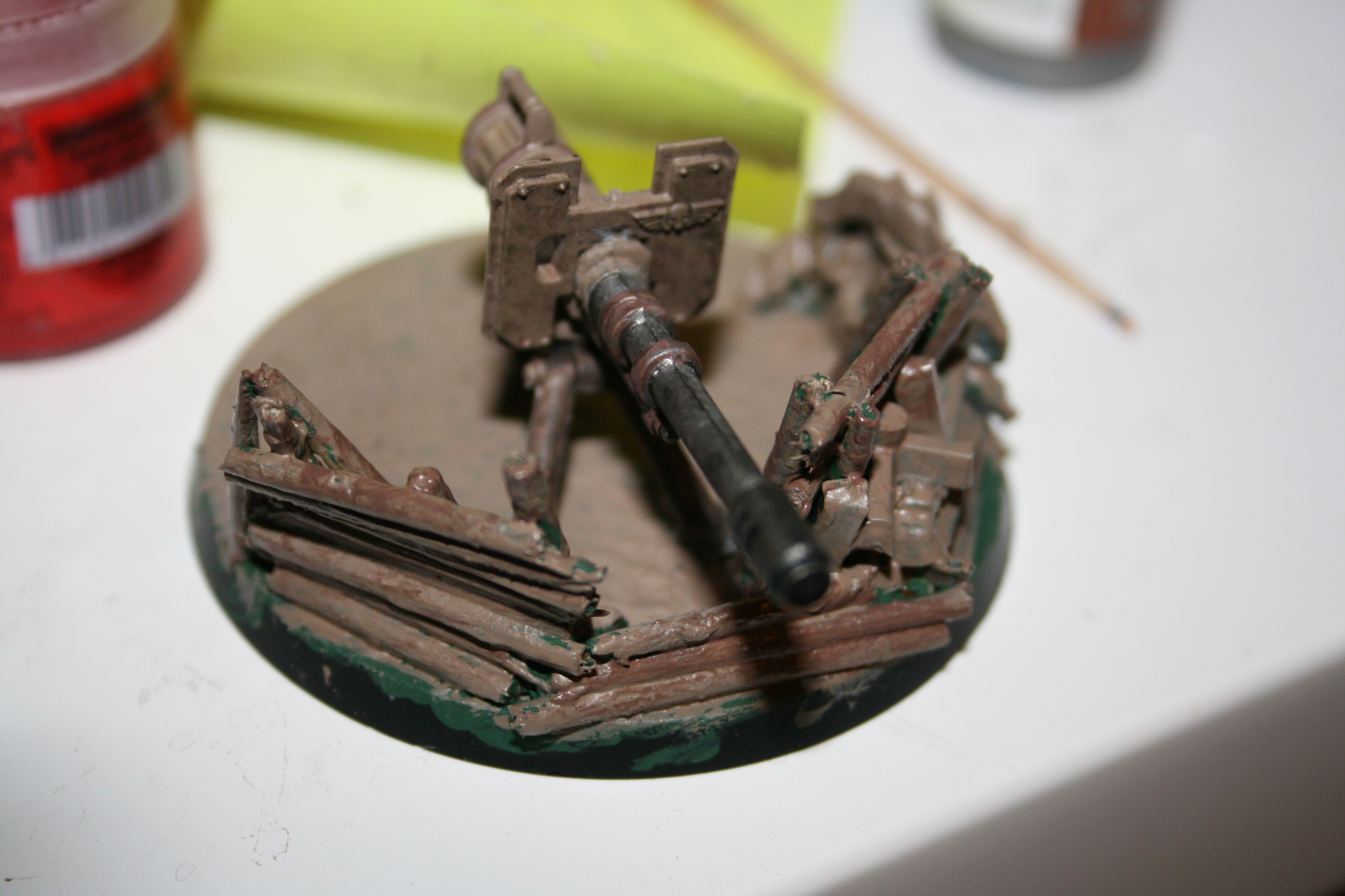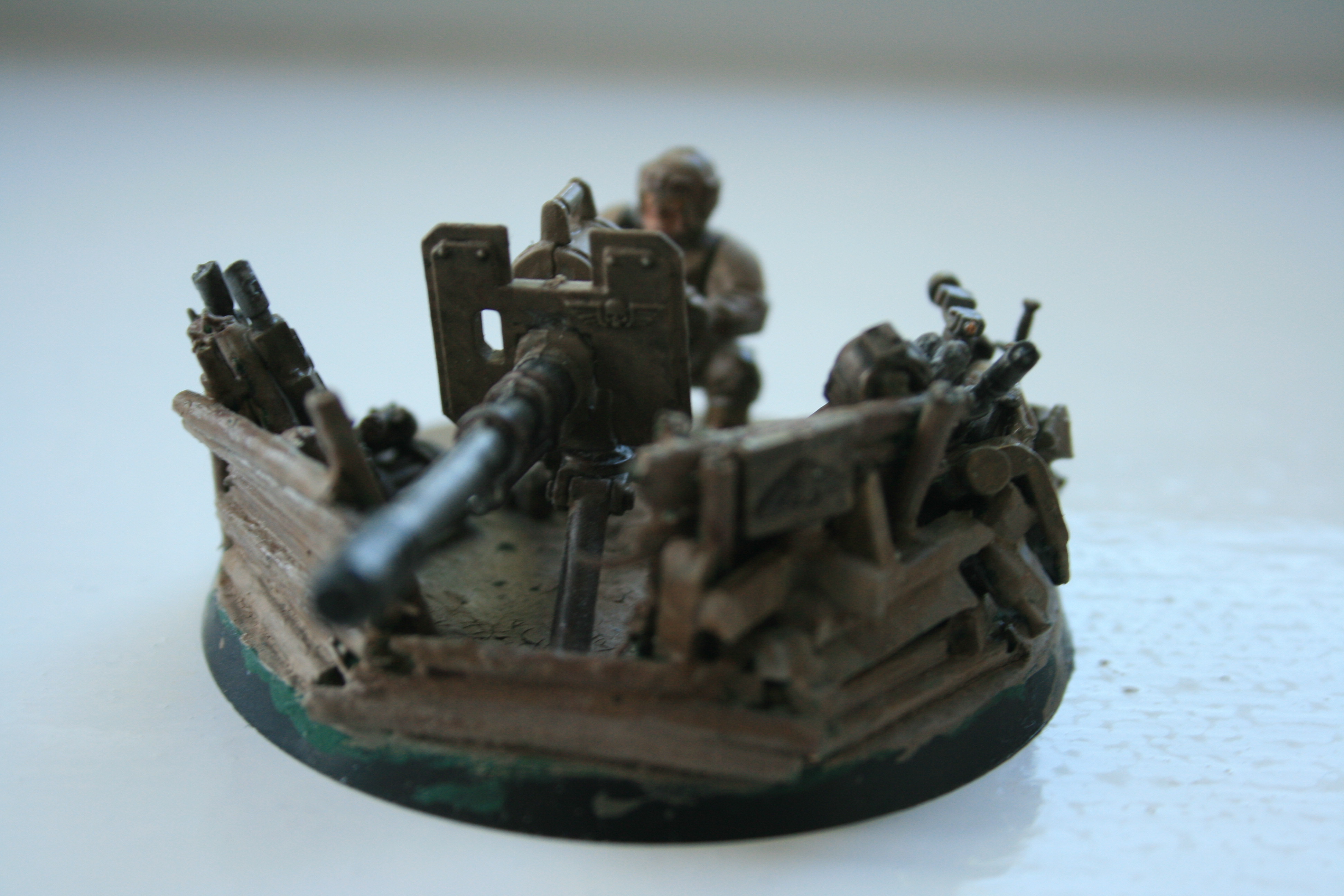 and a base incorporating a dead guardsmen gear and rubble from wrecked tank track.