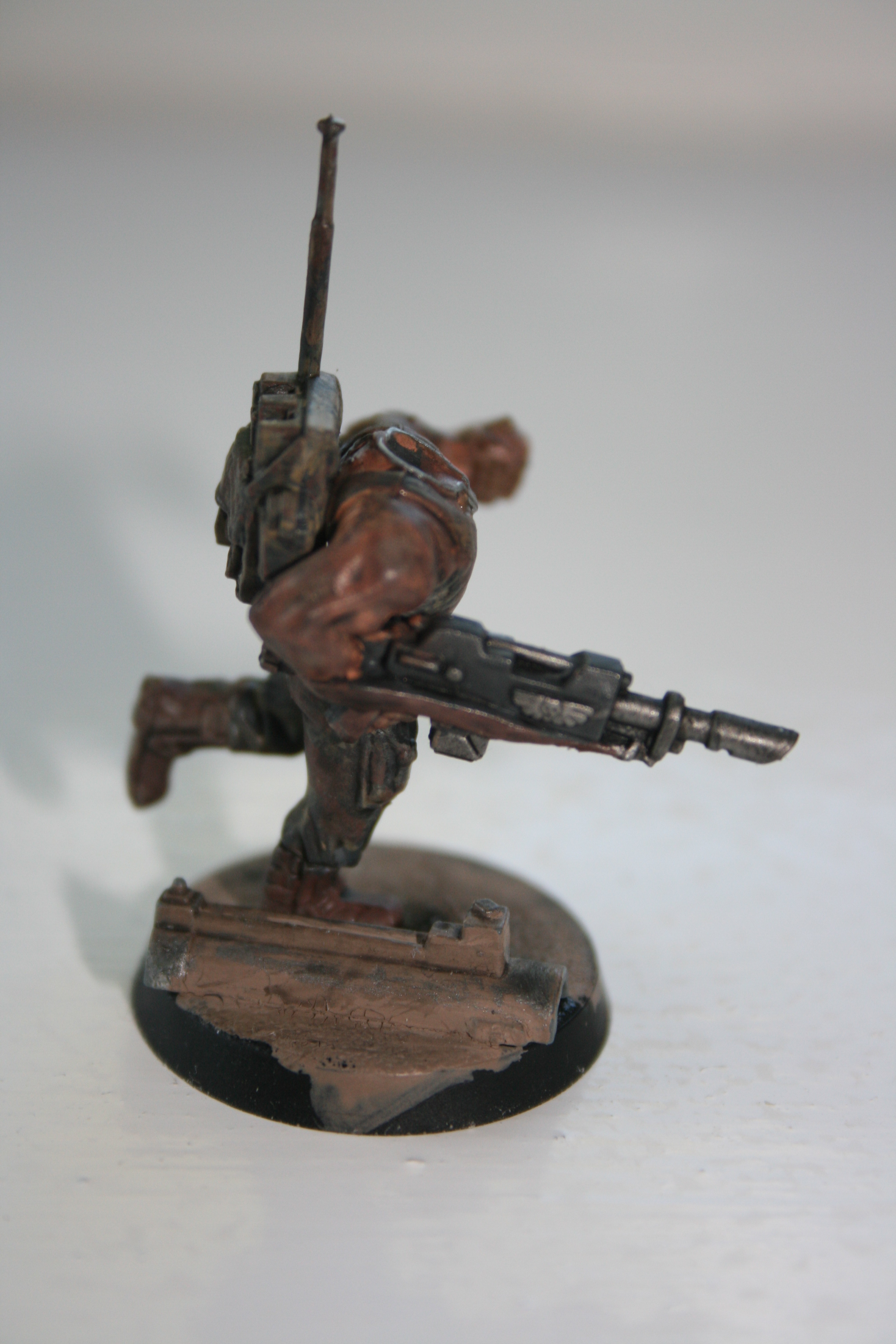 My cammo effects are very much like it, dirty, splodgey, but il make sure to add some dirt to uniforms. argellion earth or liquid green stuff thinly added to boots maybe to make more thick and textured than just paint.