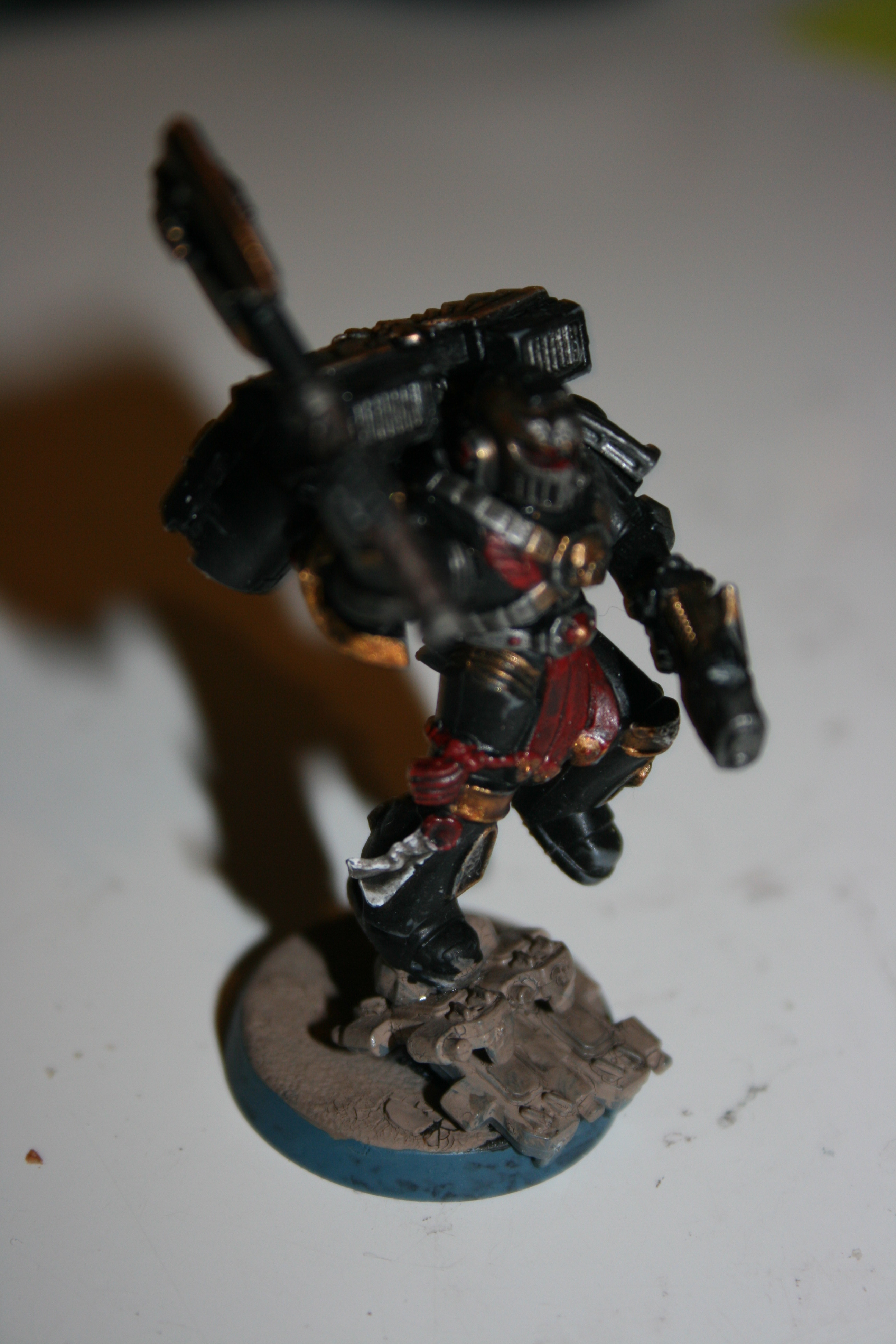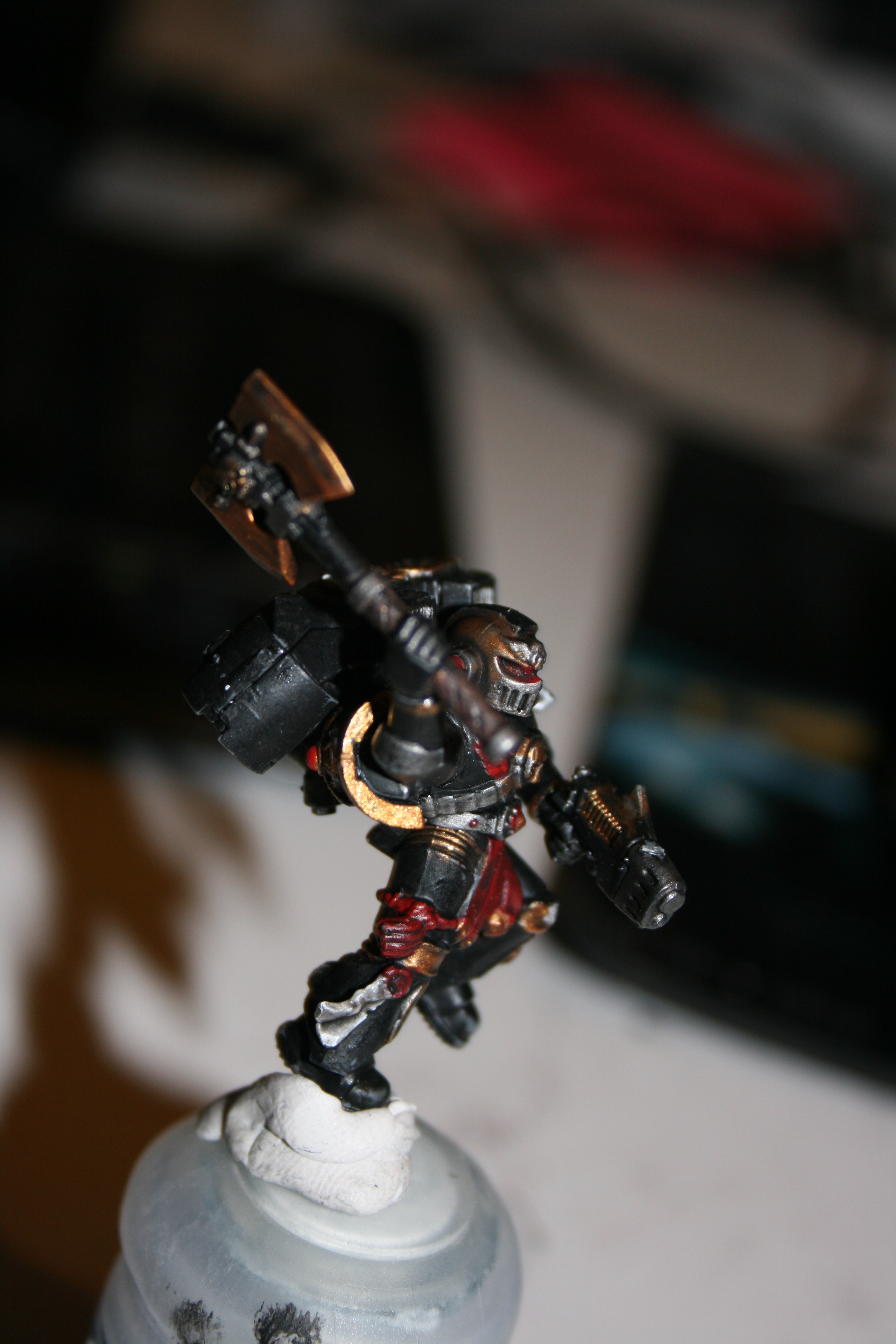 and some badd images of what will in eend be a chaplain but only one arm so far, bolt pistol,crrux termius on the shoulder rimmed in red,