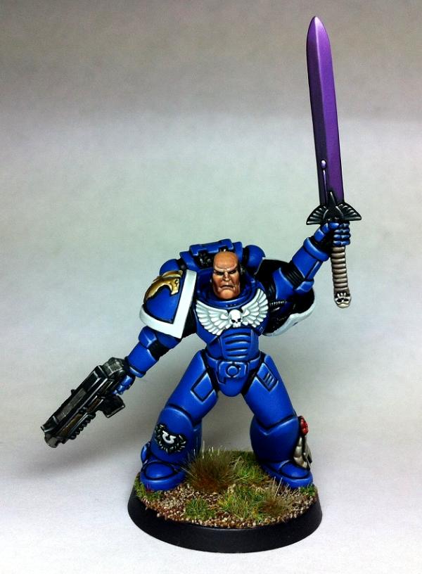This is an Emperor's Champion I did for my Ultramarine army, and one of the first times I tried true scale after seeing it on a website 'Master of the Forge'.