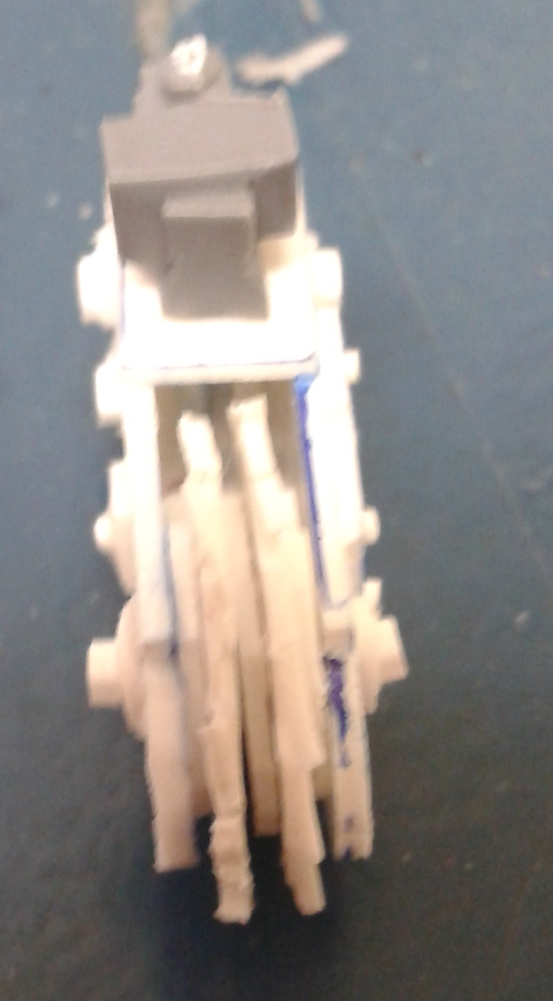 I've chopped and curved some transparent plastic and I'm building on it with the thick water gel that sets hard.. This is the first coat and looks really scrappy.