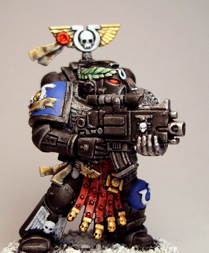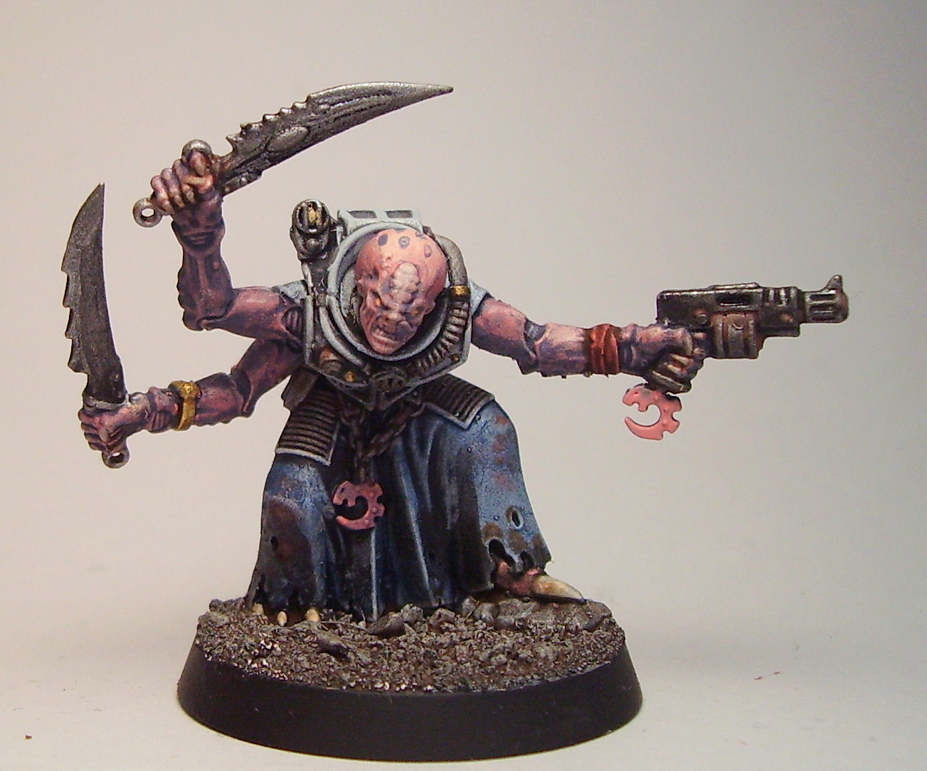 While I'm not much of a fan of the bling-tastic Chaos marine sculpts, the cultists were quite fun to paint.