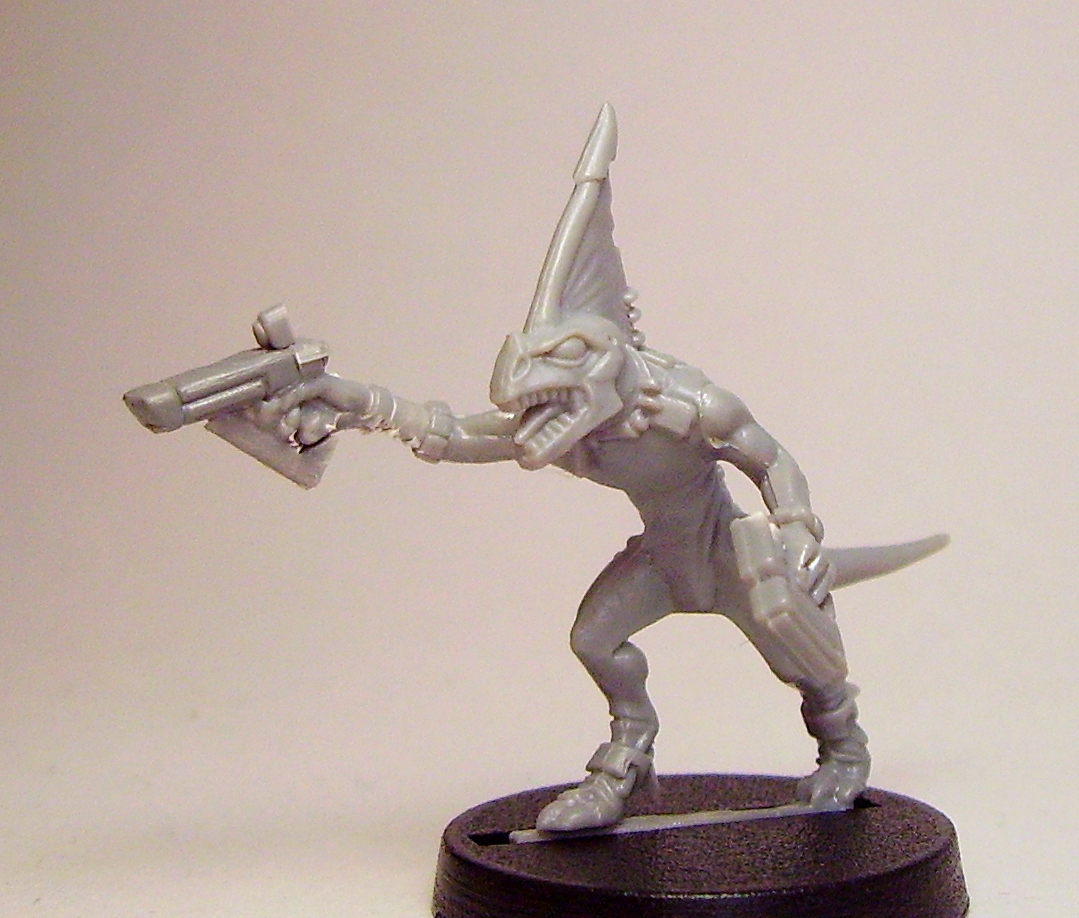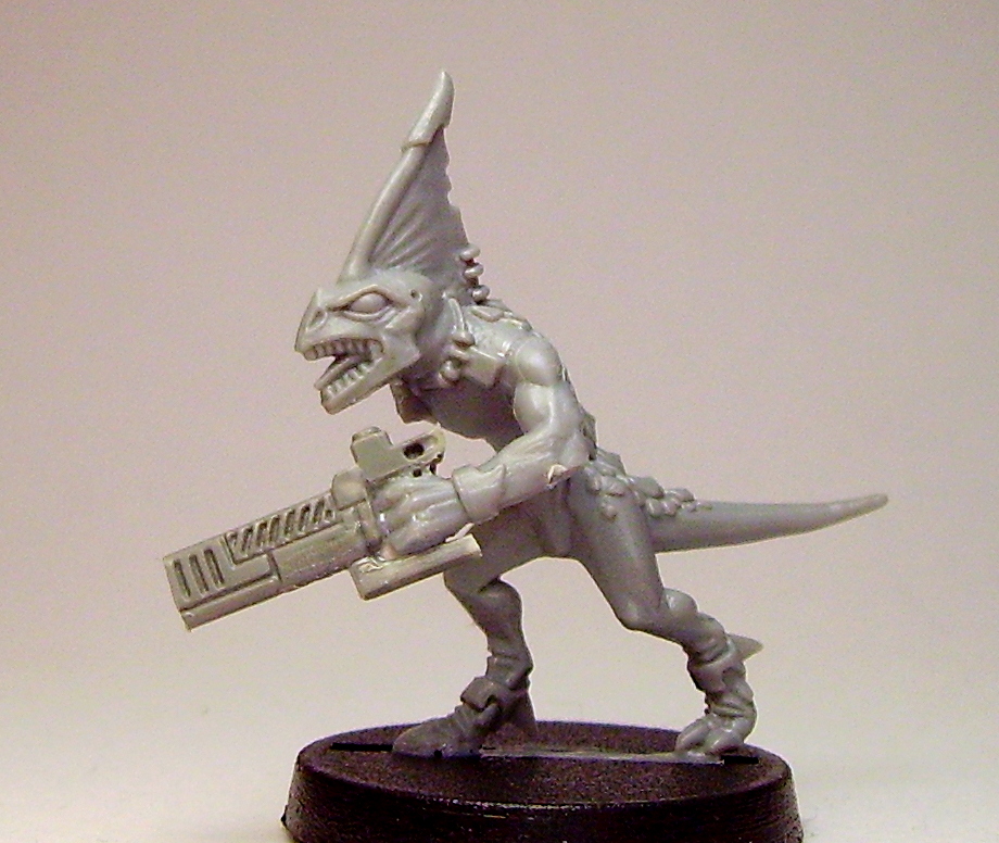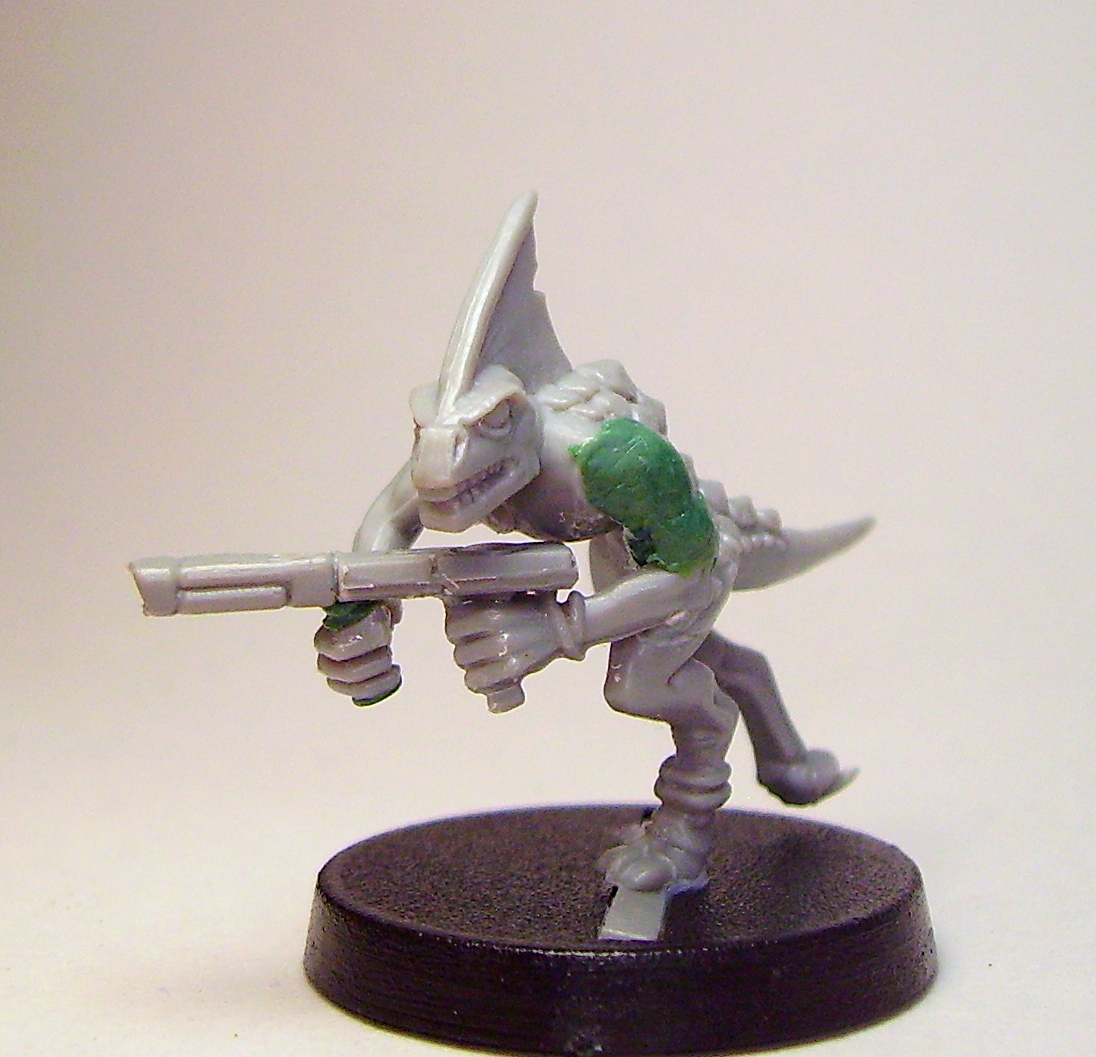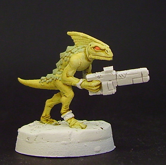 A little progress report, first the space slann, after long deliberation, are going to be yellow, with green scales and red eyes. Not sure what colour to do the guns yet, probably gold...