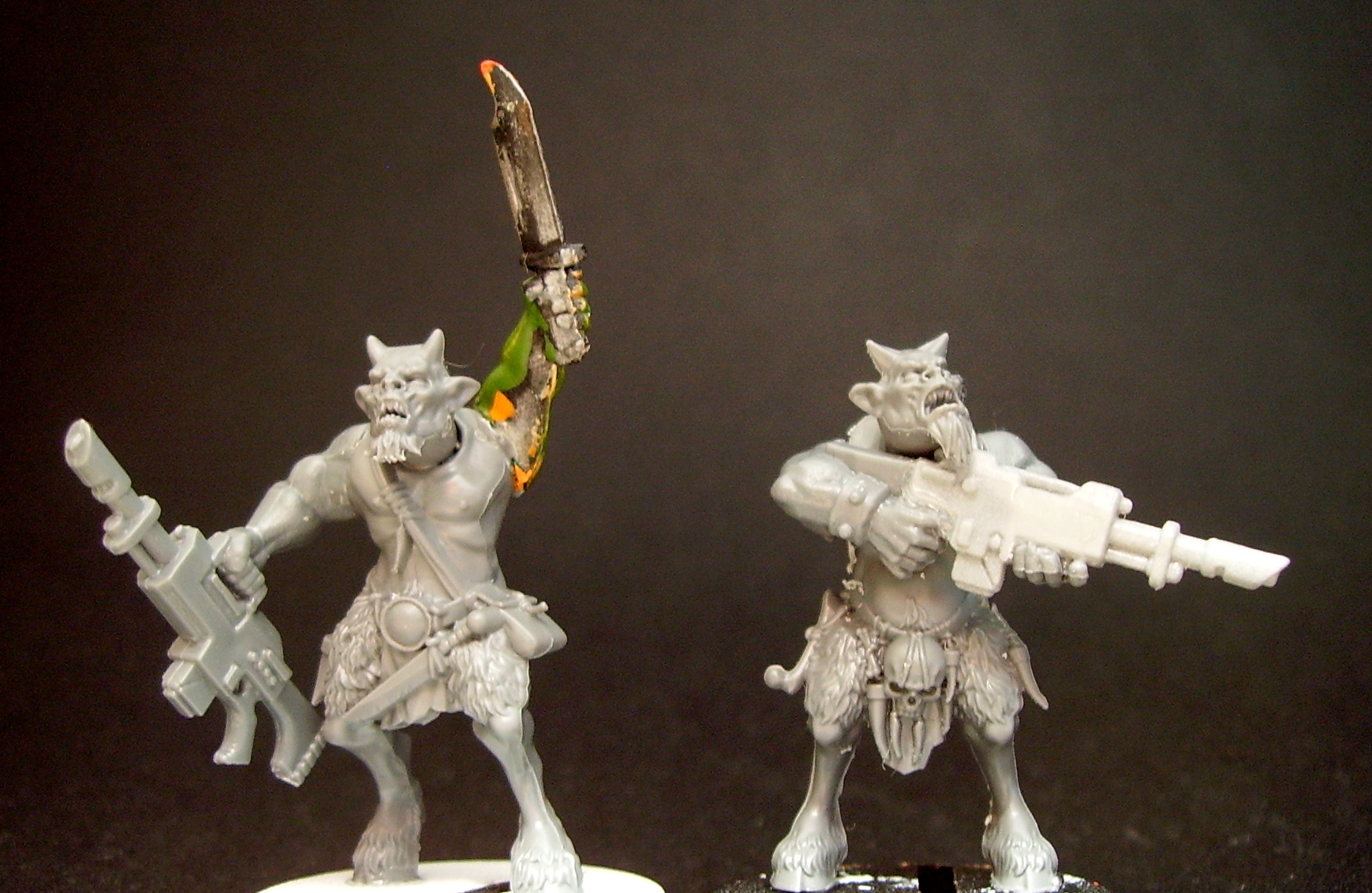 Bit more progress on those beasties. They look done but I've a mind to put some tribal tats on their big catachan shoulders.