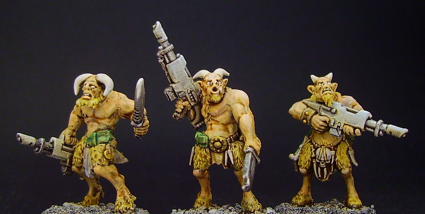 Next is a representitive sample of the progress on the penal beastmen. They need rust on their guns.