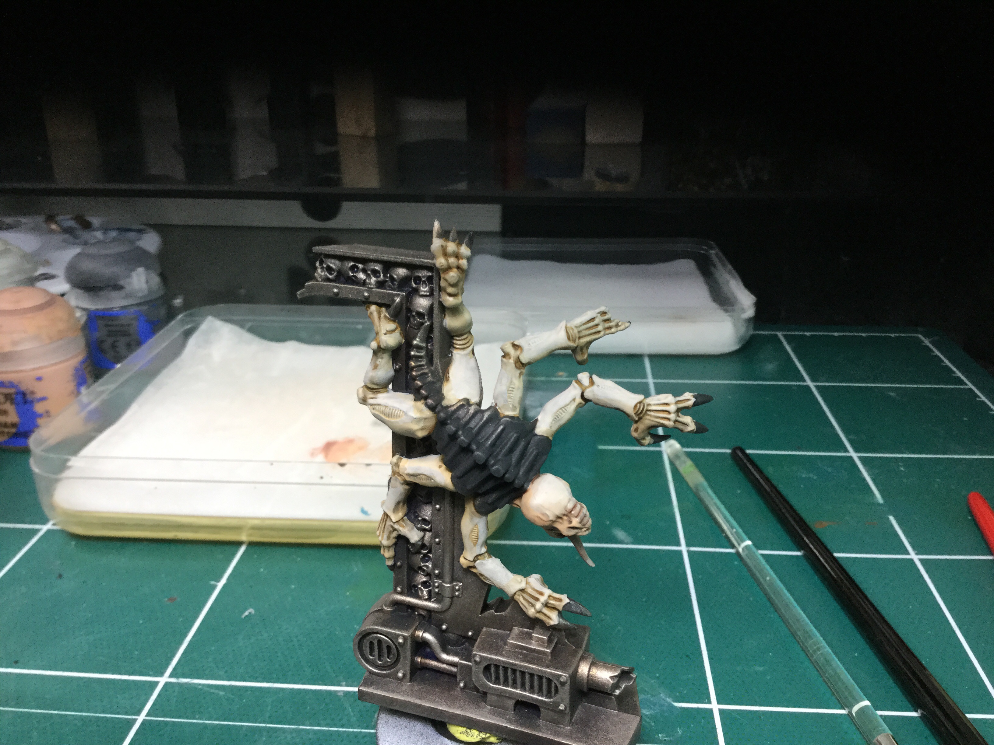 Spent the weekend mostly working on the freeblade knight so poor wee haemonculus hasn't seen much progress. Got his innards done and initial steps on his skin though. Half day Wednesday tomoro though so hopefully get his skin cloak well under way at least. Still need to think up and make a wee dio for him too