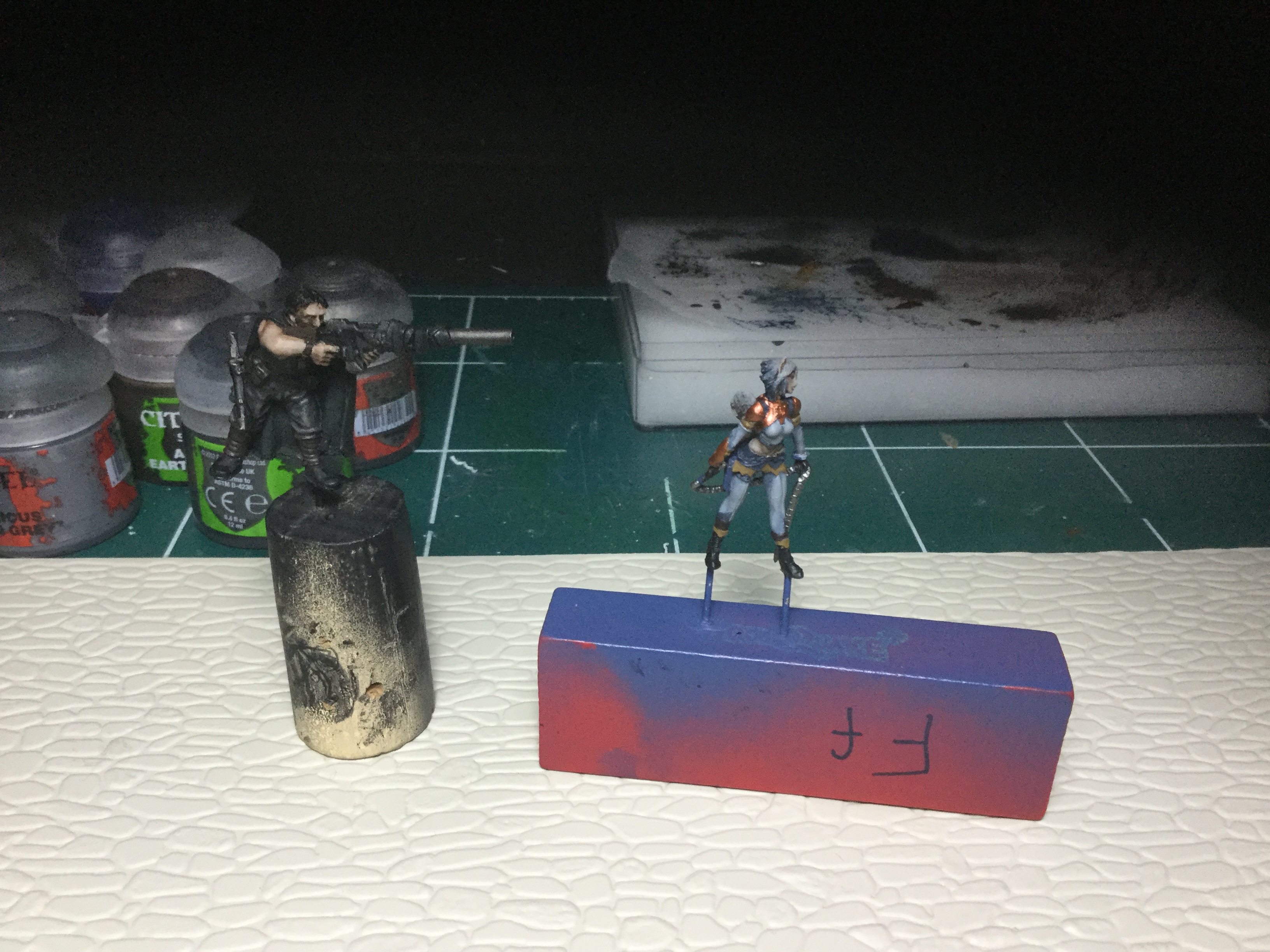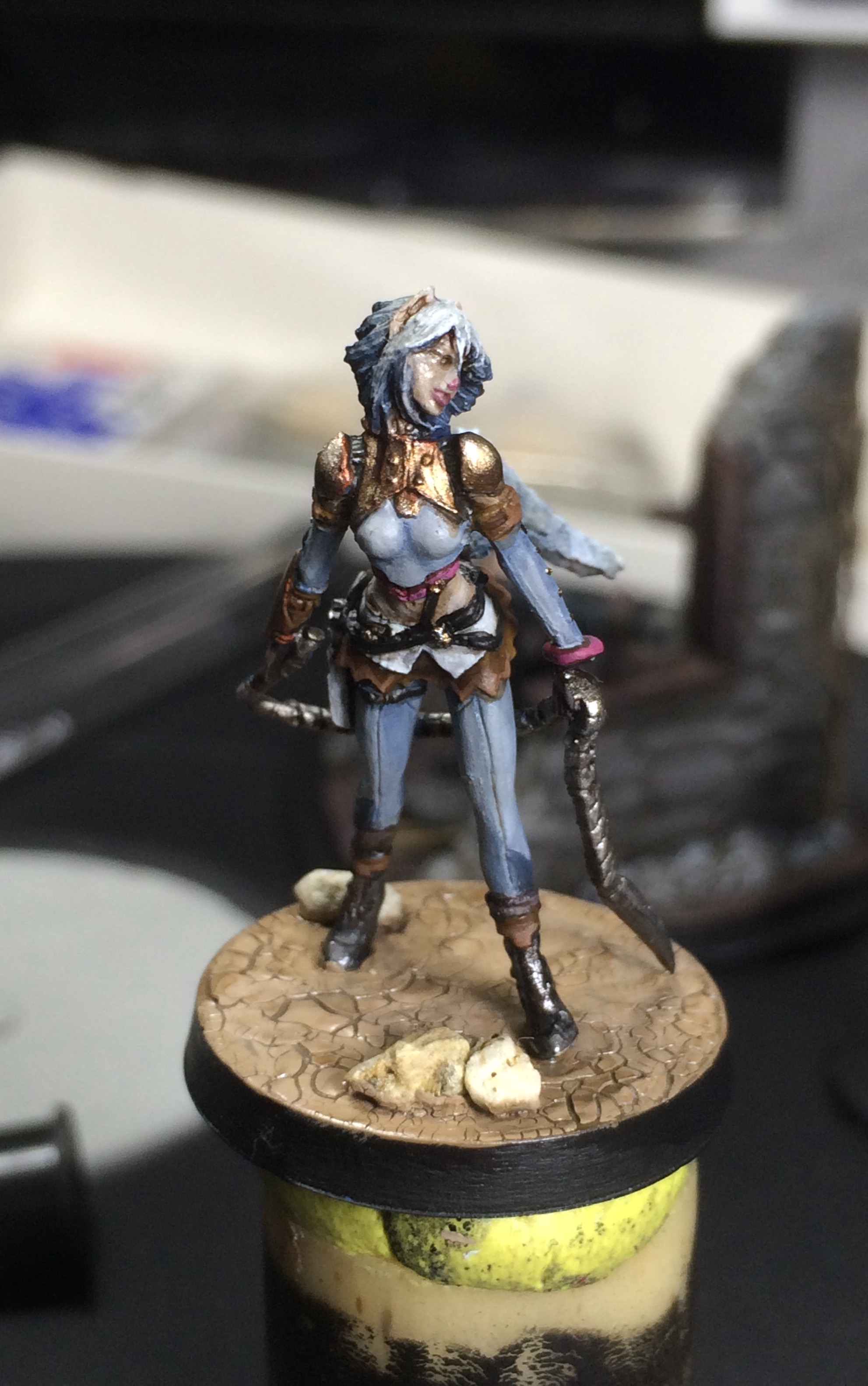 She is pretty tiny. Highly detailed. Had to to put a dark wash over the primer to start with just to get an idea of all the detail before i strted planning a scheme out. The box photos and art are next to useless for that. Shés coming along though. Had a bit of fun trying out some wet-on-wet blending with layer adn wash on her leggings though