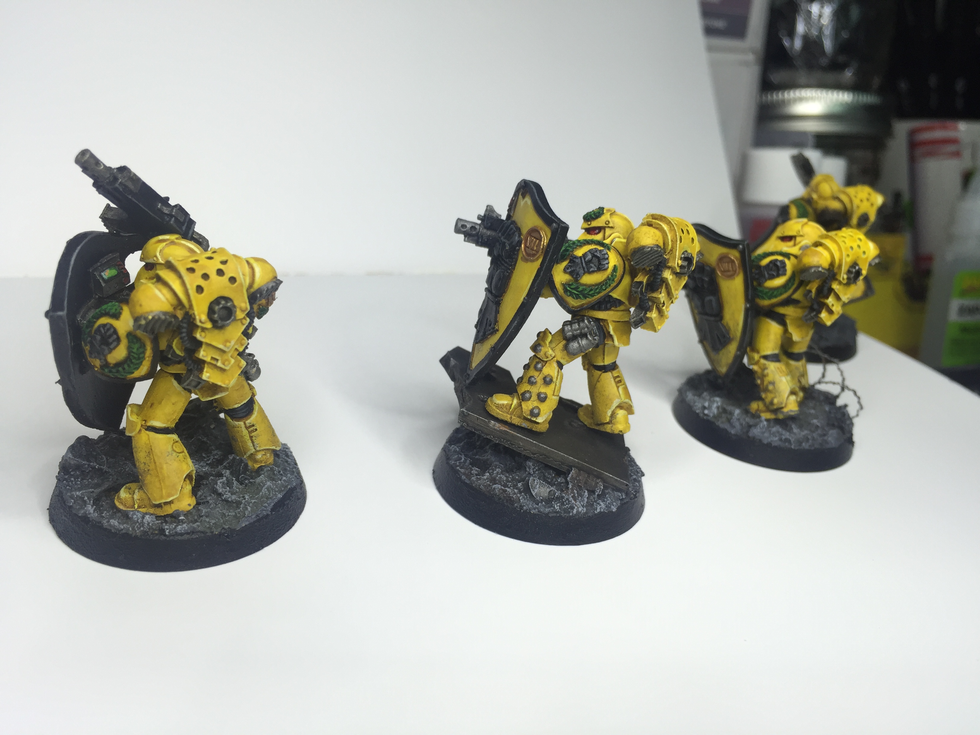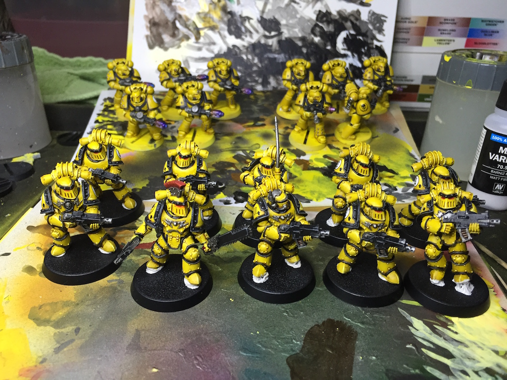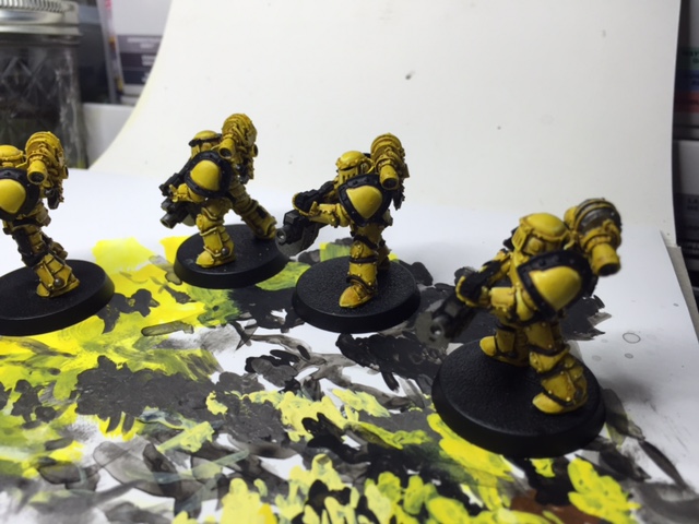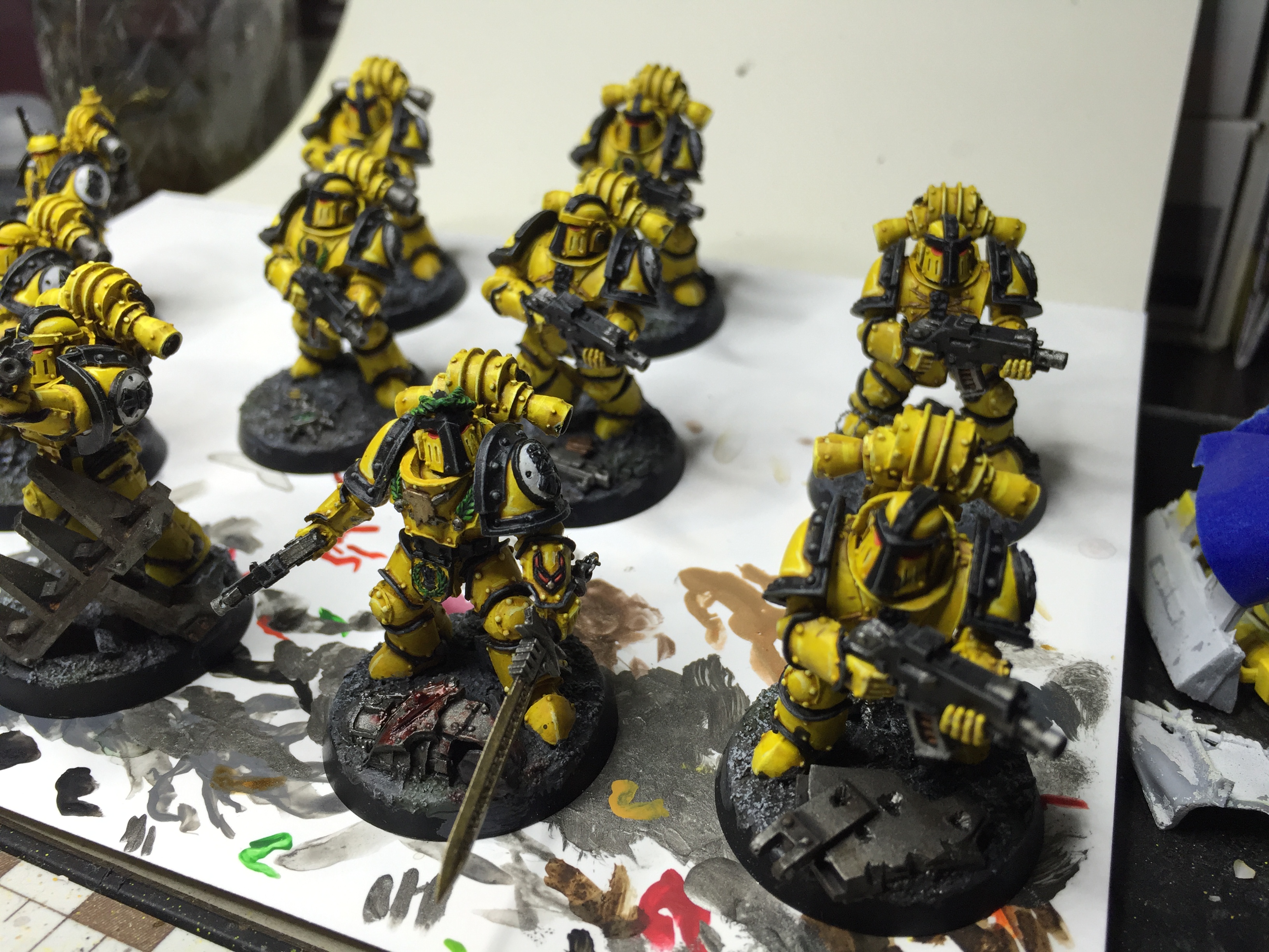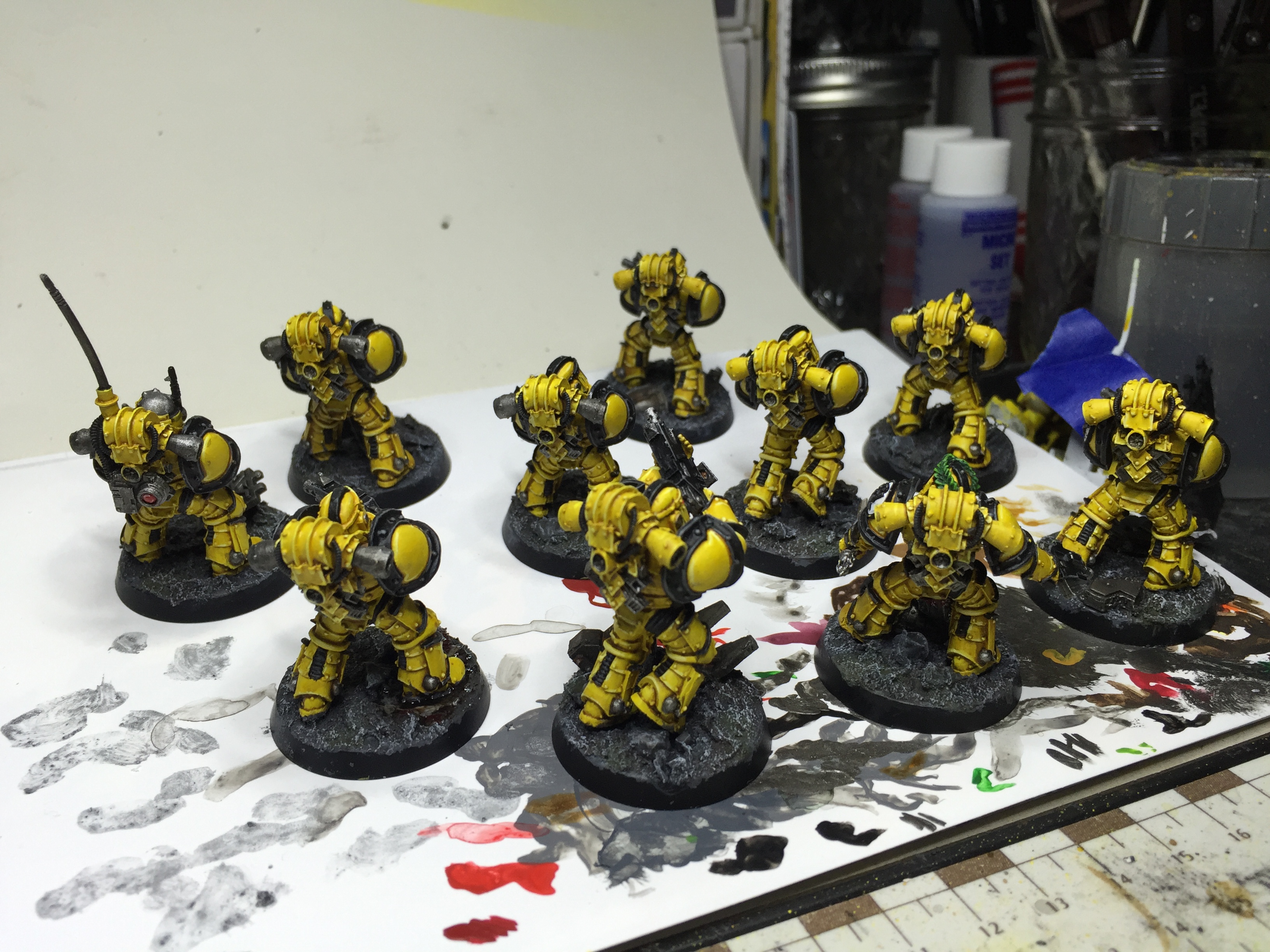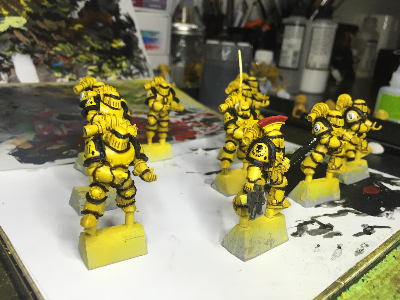 Gorgeous! Love the yellow and especially love the pops of green mixed in there man! Very clean (As in cleanly painted!) and slick looking squad. Nice basing too!
