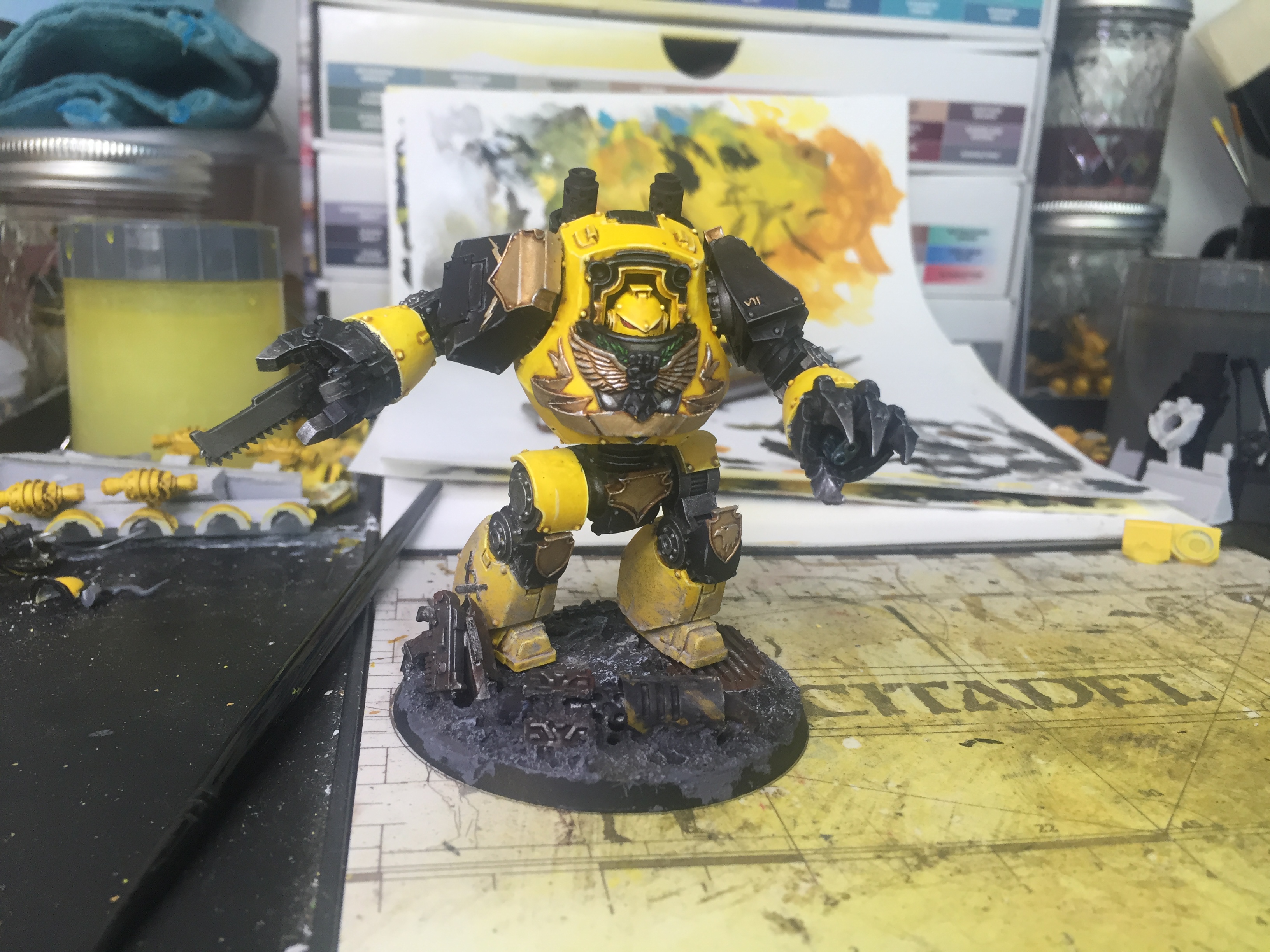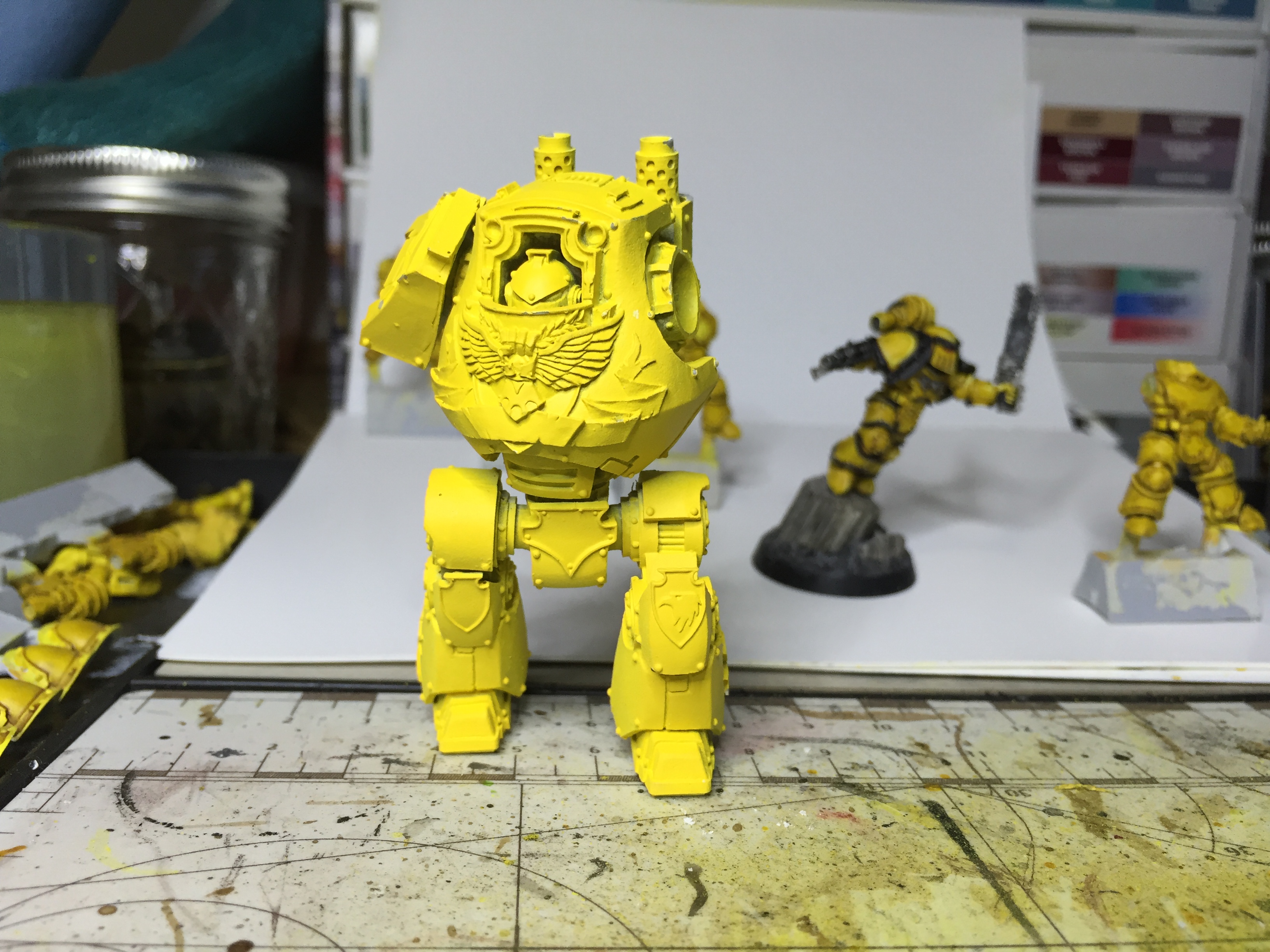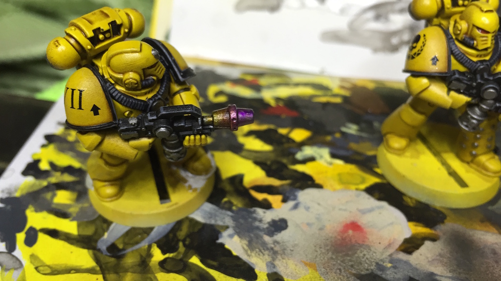 Ive been using FW's new airbrush paints: Phalanx Yellow and Sigismund Yellow. I apply them with brush and airbrush respectively.