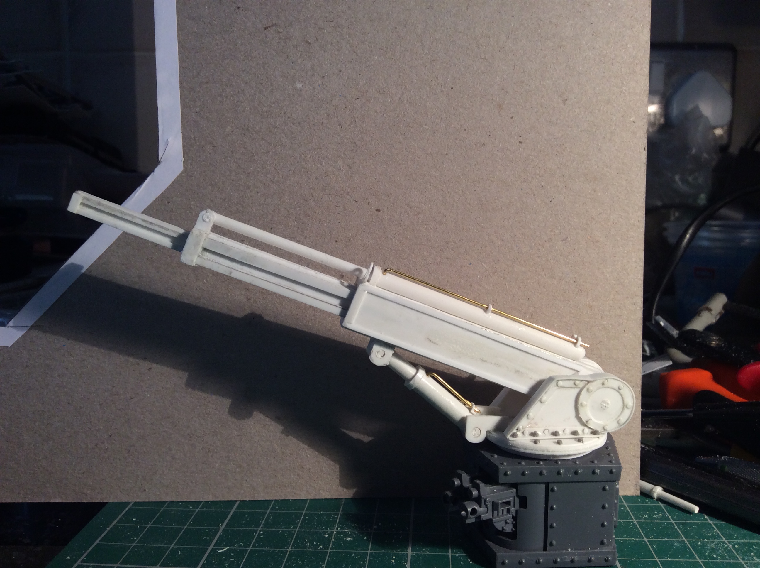 Quick update, main ram on the auxiliary crane is nearly there and have started to detail the mounting base. Neatening up the first stage arm edges and just need to add an imperial or mechanicum icon detail, undecided at present,