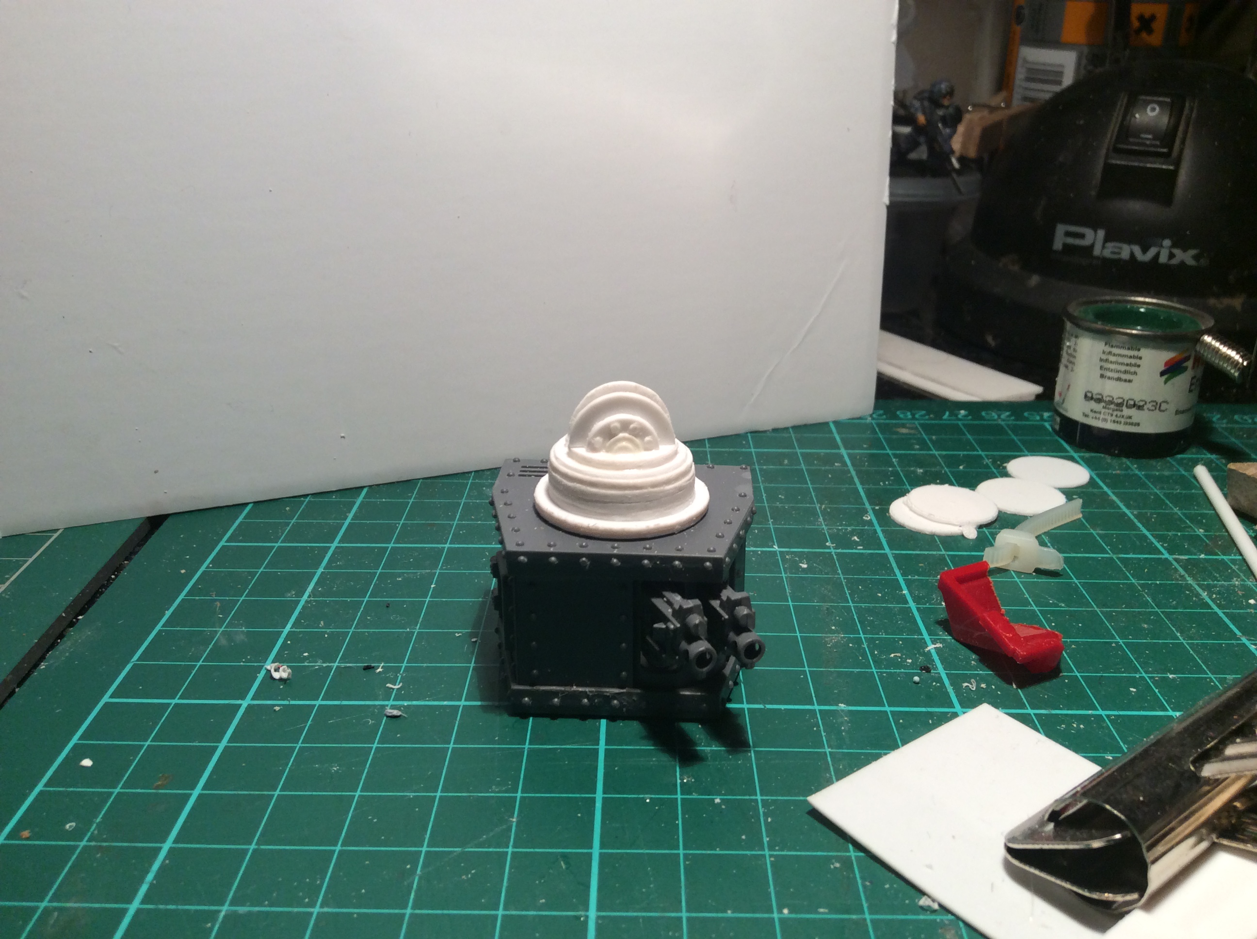 In answer to you question Stormwall I'm playing with the idea of tracks instead of wheels at the front, rivet + panel hinge detail, working lights, flashing orange beacon and all finished in mechanicum red with wasp stripes on the rear. The colour scheme may change though