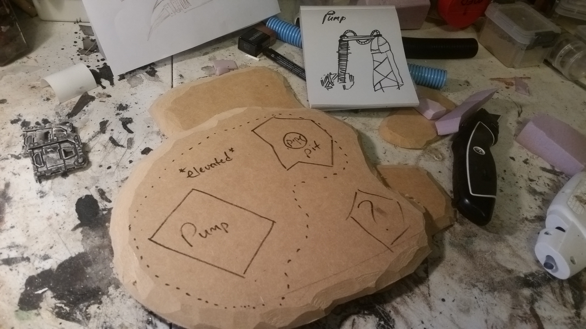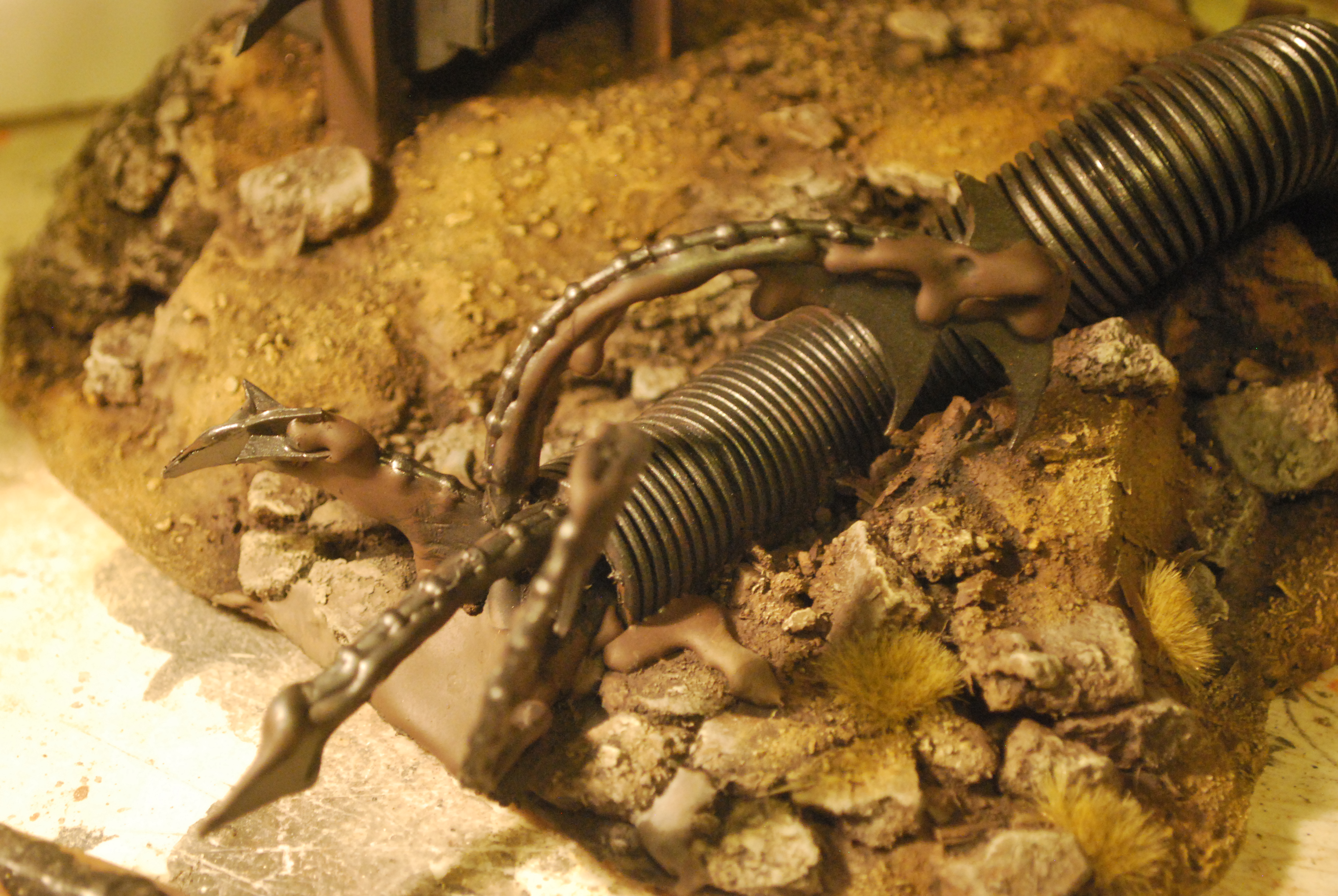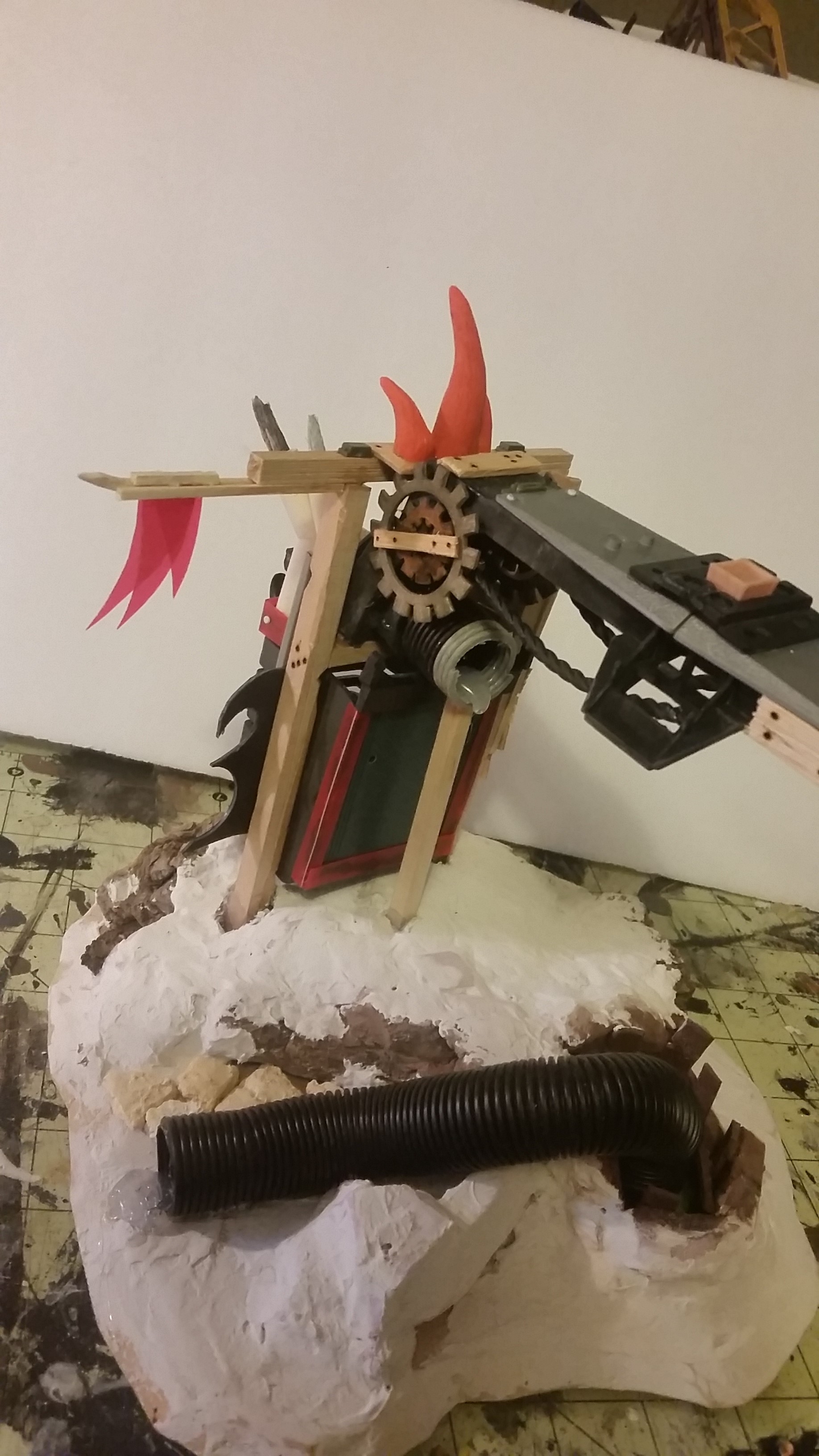 Got some work done. Decided to change the pump up a bit to help with theme. Now the pump hose has disconnected from the assembly and fallen oer oozing out slime and some of these little critters I'm scratch building. That should help. Also adding on a ton of bits and spikes and whatnot to the main body of the machinery.