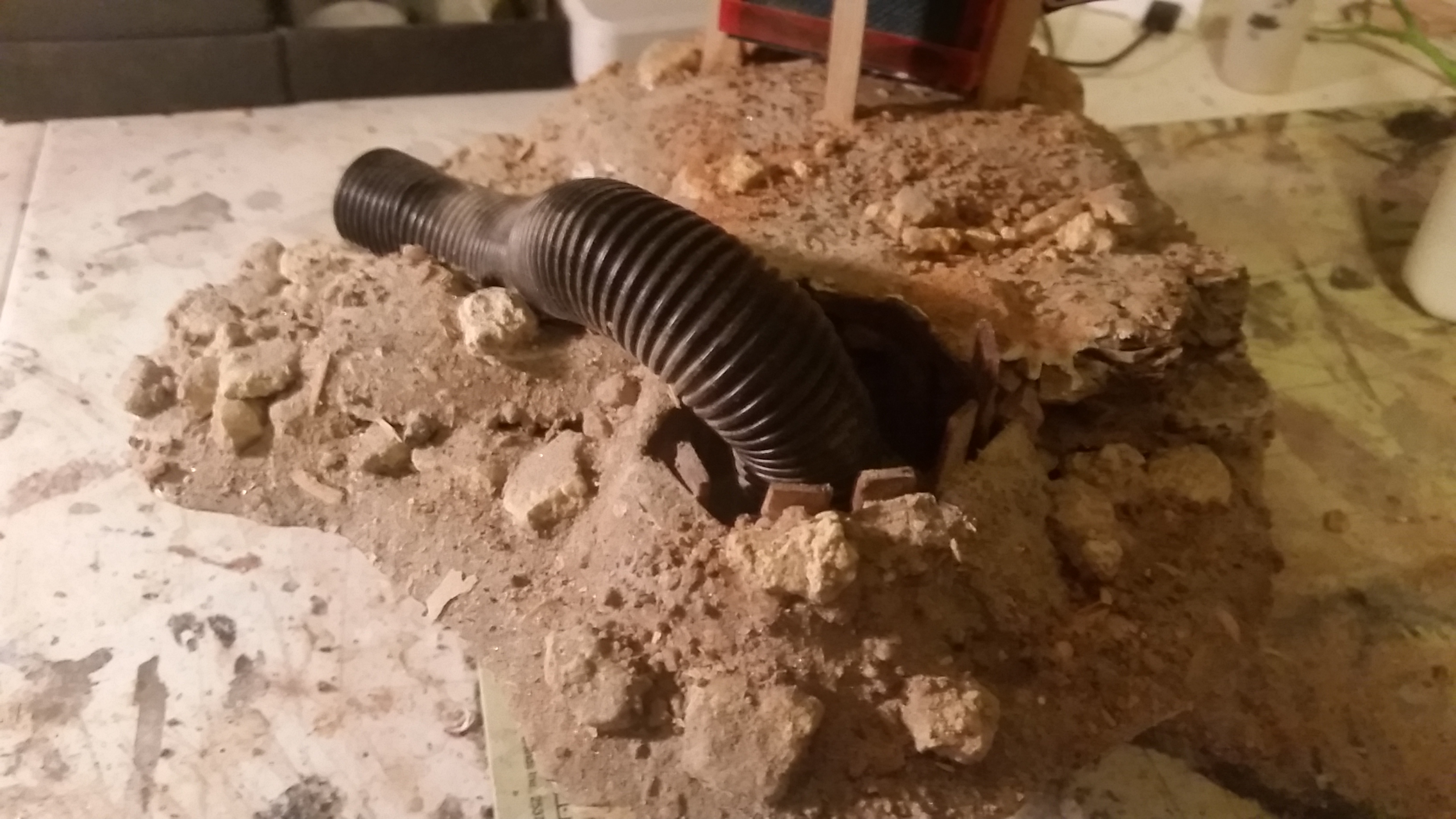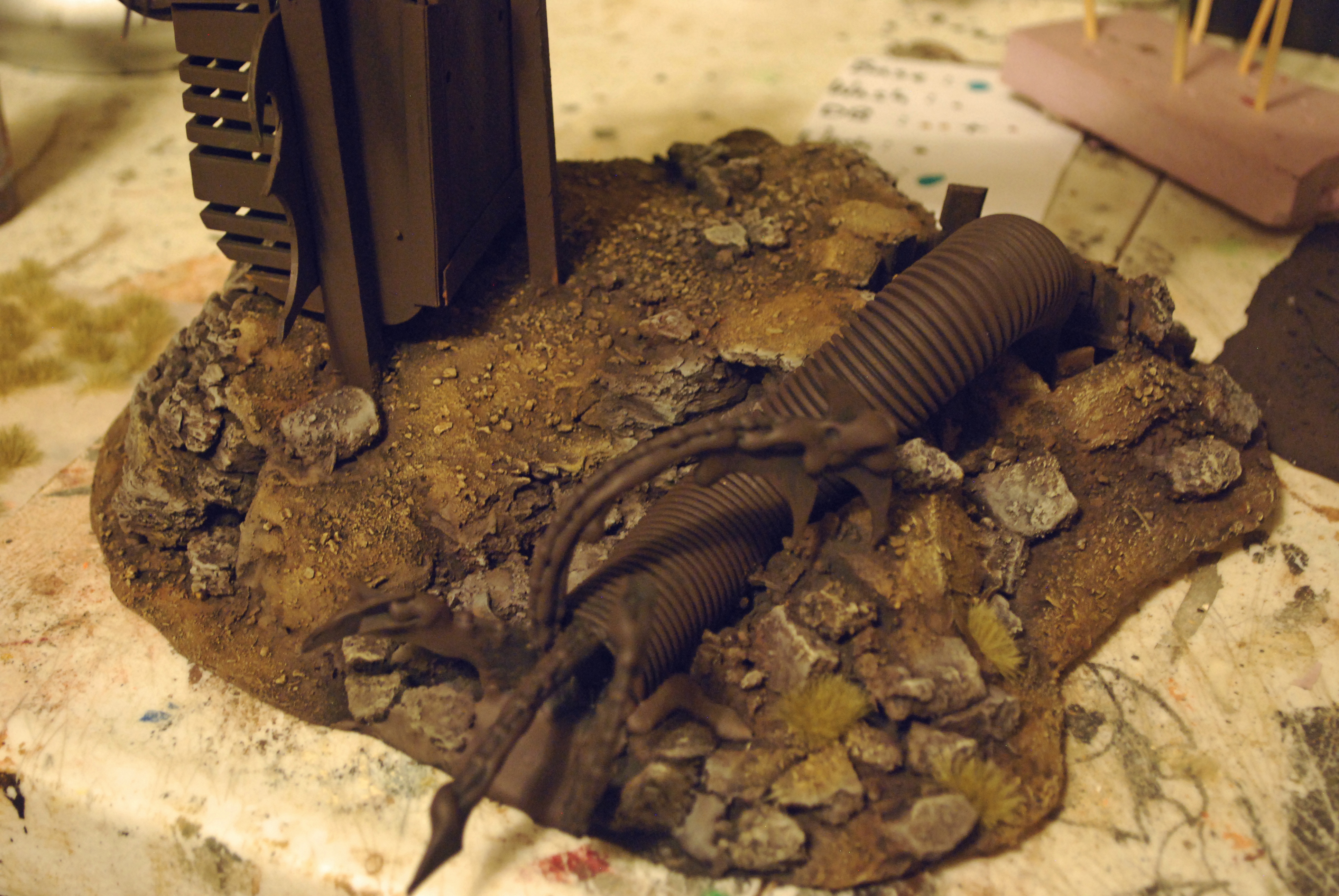 Also finished texturing the base with a lot of PVA and dirt, sand, gravel, dental plaster stones and sawdust.