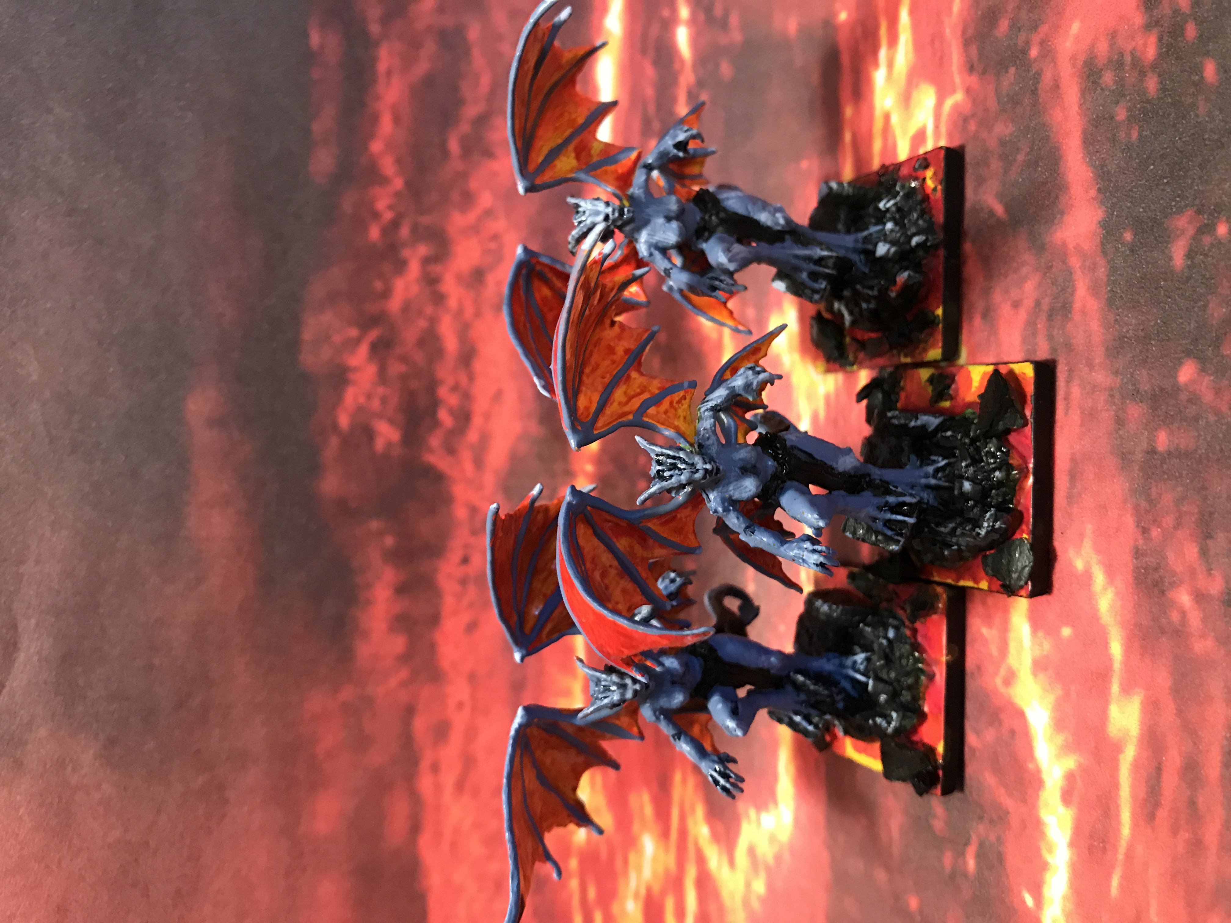 ok, time to start to show off some of my fruits of labour. I will start with 3 gargoyles that I did for my Kings of War: Vanguard Abyssals warband.