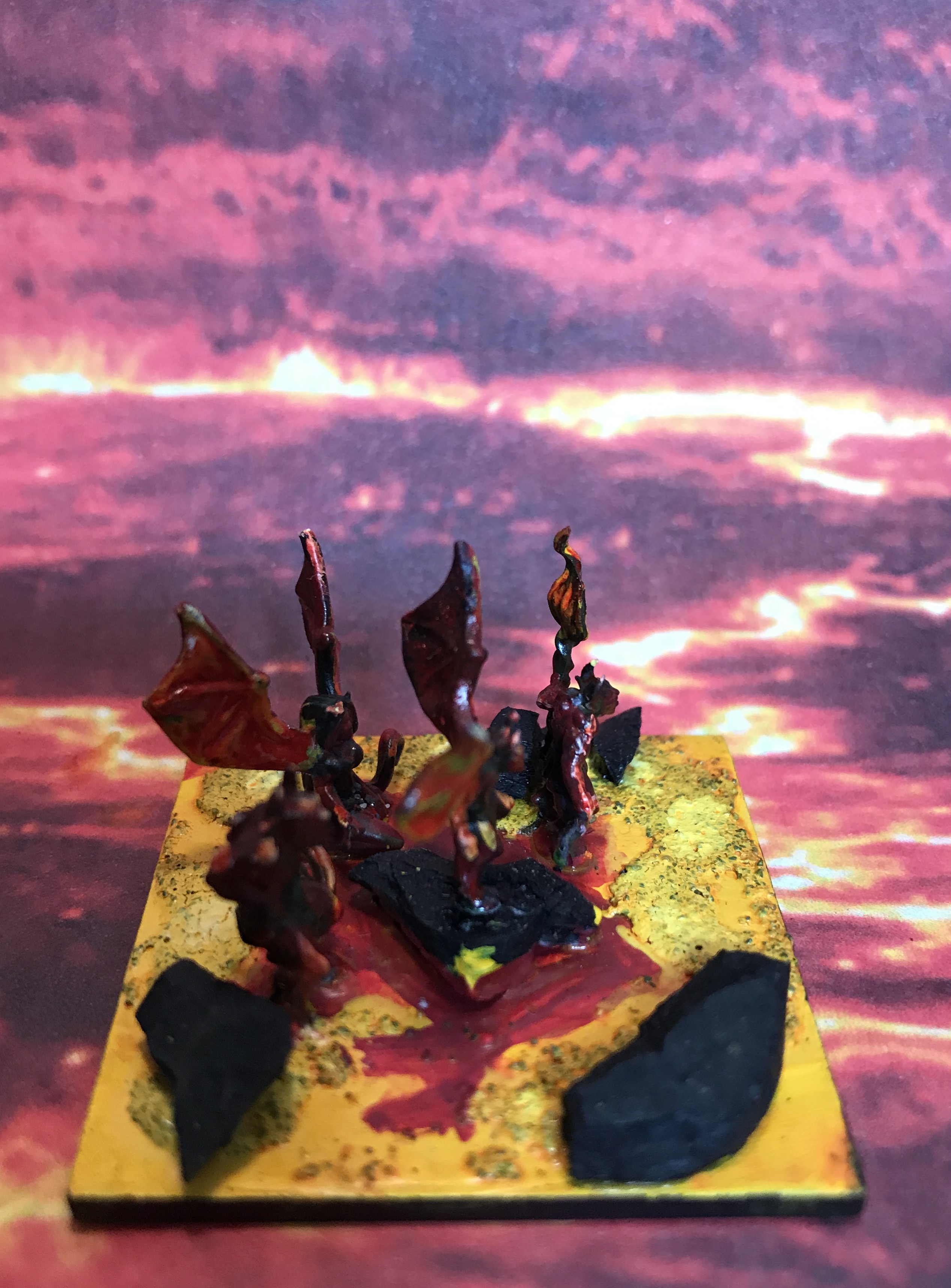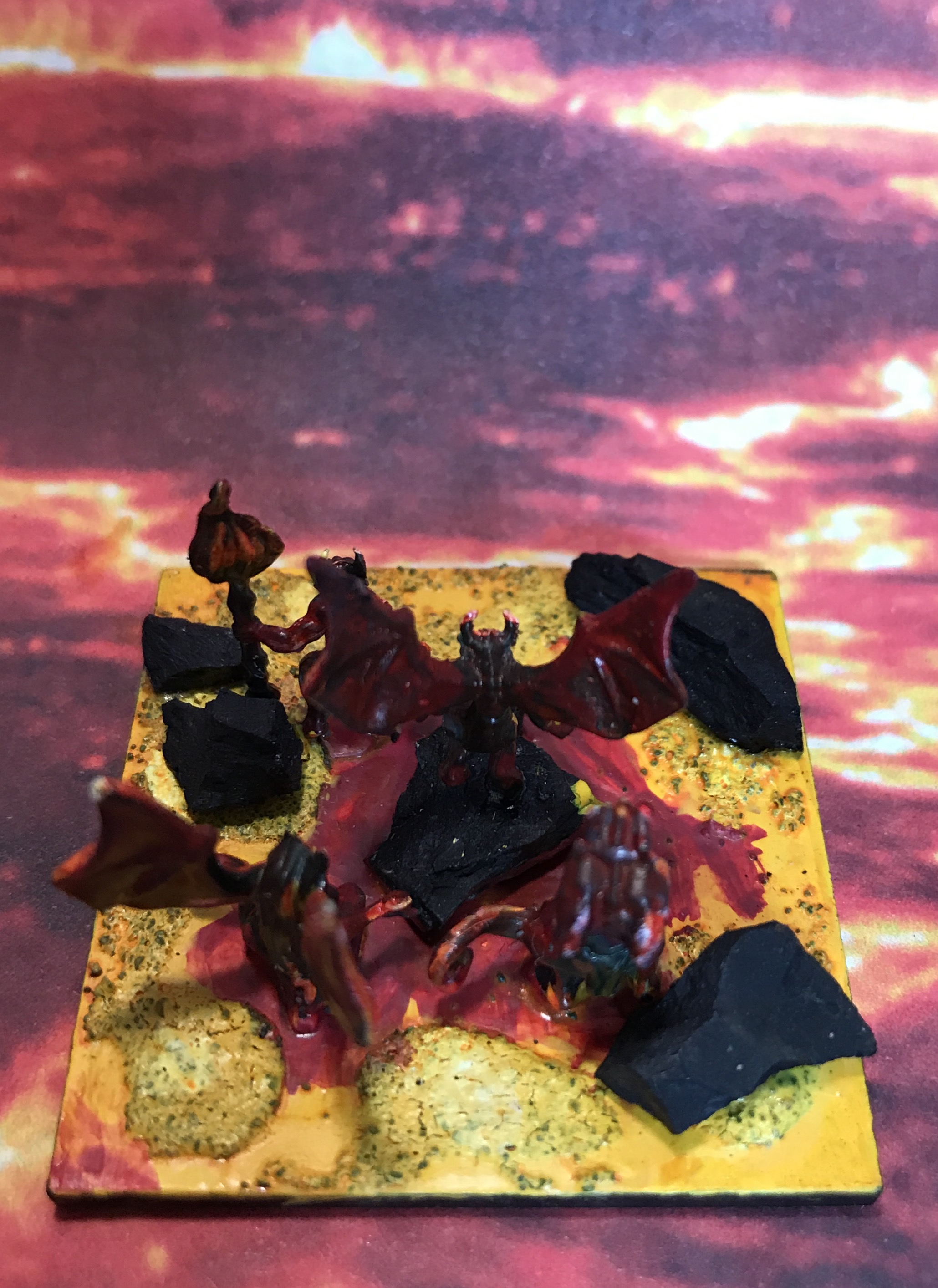 I was trying toget a bubbling effect for the lava by putting sand on the base first. Always experimenting.