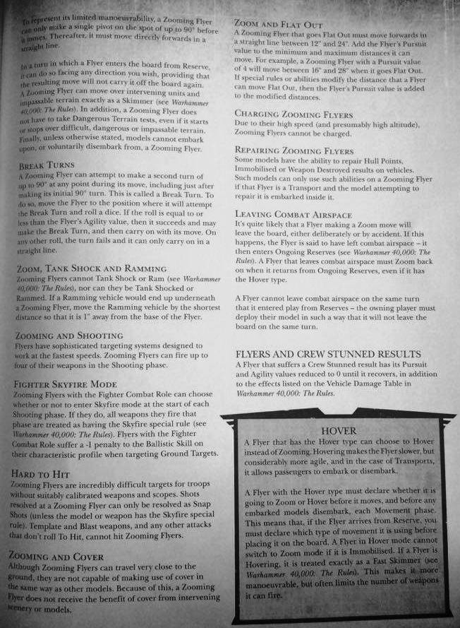 Gonna have to go with gungo on this one, who cares if the book replaces rules for flyers from the 40k rulebook, its not mandatory until its actually in the rulebook, until then its just a supplement like Cities of death etc. and thus, not required for actual play, unless of course your saying all supplements are mandatory?