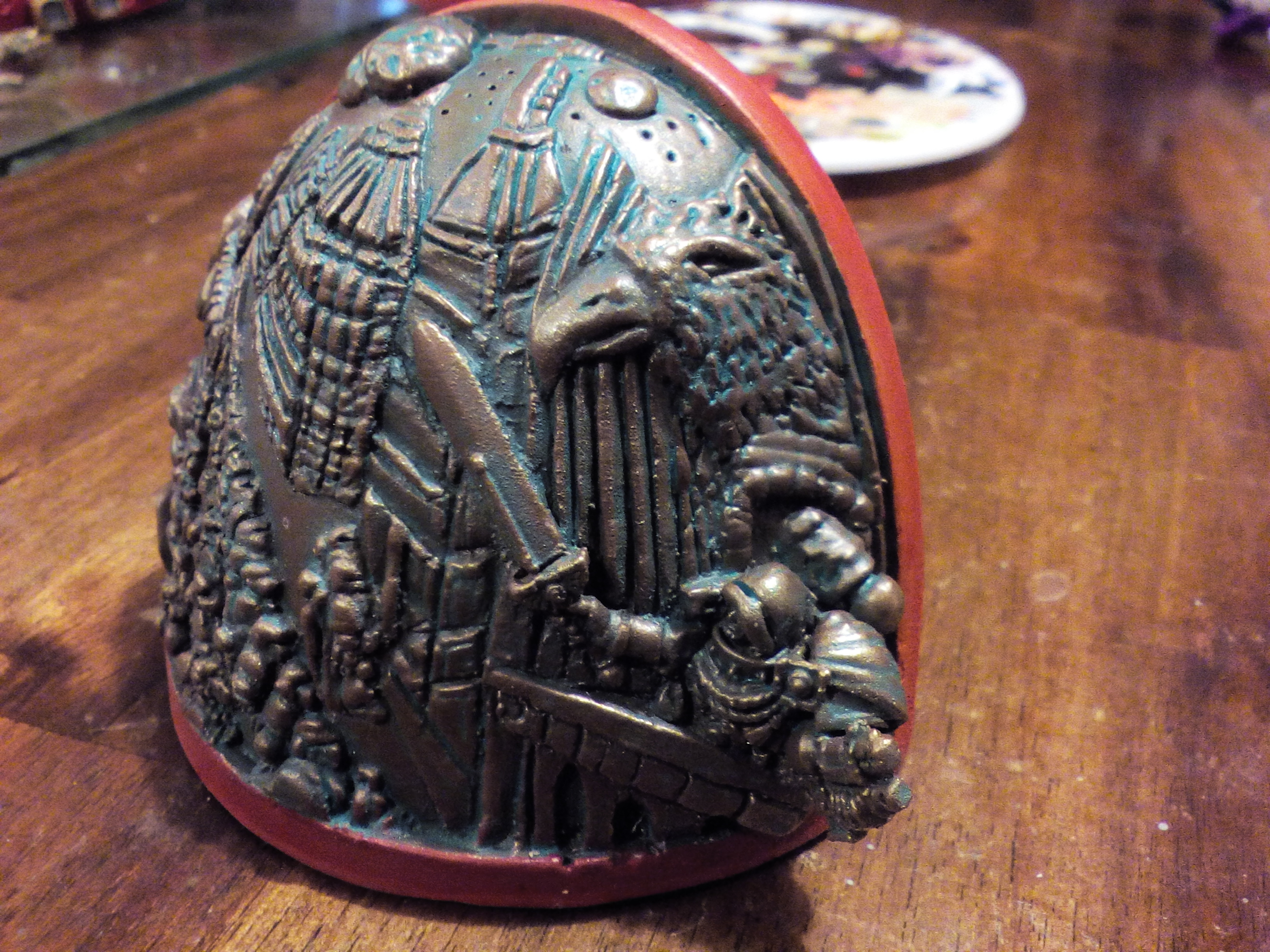 Ironically, nothing I have on my desk right now is actually using that metallic base technique I mentioned, it's all NMM stuff at the moment. I'll grab some WIPs next time it comes up, though. In the mean time, the best examples I have to hand are below.