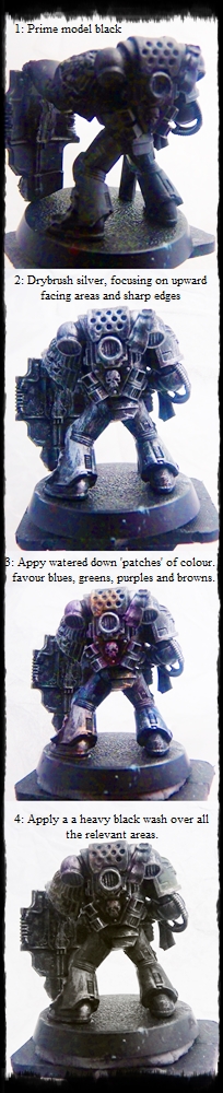@paradigm : I'm going to try this with my terminator lord, unfortunately I primed him grey (because that's the only primer I have, thanks "not as knowledgeable as you led me to believe" lgs owner) so I'll have to paint him black first.