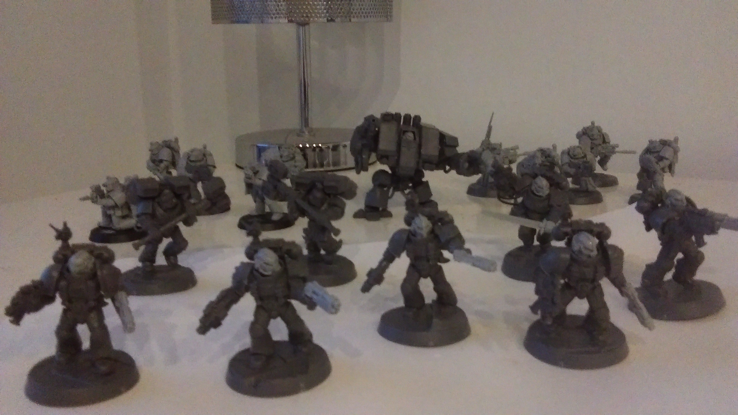 ChaosDad wrote:Finished putting together the models for my killteams, so far I have, for a 1500 point list (I have a few more built, enough for an extra 250 points...): Black Spear Formation Captain Artemis, 145 pts Jensus (Librarian L2), 95 pts Killteam 1 Cassius (Chaplain) 95 pts 1 Terminator Librarian (L2) 115 pts 5 veterans (Sarge with SS and Xeno blade, 1 hellfire HB, 1 Blackshield with claws, 1 shotgun, 1 TH + SS) 250 pts 3 Vanguard veterans ( HTH, TH + SS, Claws (Edryc)) 145 pts Killteam 2 Terminator (Assault Cannon + Meltafist) 70 pts Garran (Heavy Flamer + Meltafist) 60 pts 5 Veterans (2 Frag cannon, Powerfist, Shotgun, Blackshield TH + SS) 230 pts 3 Vanguard Veterans ( HTH, TH+ SS, Hand flamer (Antor)) 145 pts. Venerable Dreadnought (Las Cannon, Flamer) 150 pts. For a total of 1500 points, and 23 models!! Am I going overboard with the equipment? Any thoughts on what I'm doing horribly wrong? You may just be using the overkill models as standard units if so ignore my next comment ;-) I may be wrong but I don't think you can take the special characters from Deathwatch overkill in kill teams and the like, unless they have a rule somewhere that mentions they can be swapped for standard versions in formations like those in Death Masque do. None of them have mission tactics for a start. You can take them as part of a CAD or allied detachment using them as there FOC role indicates.