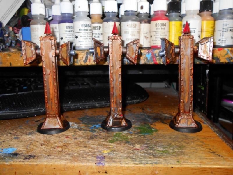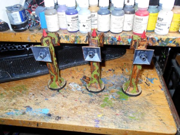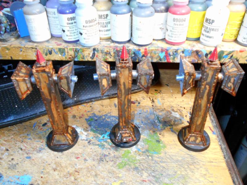 Sadly, no electronics or time to wire those up, so a static model for looks with the assumed ruling of a noise effect. Spikes will also be colored to represent low flight avoidance beacons. I wish I could have made the things with a set of micro-screamers for cool effect!