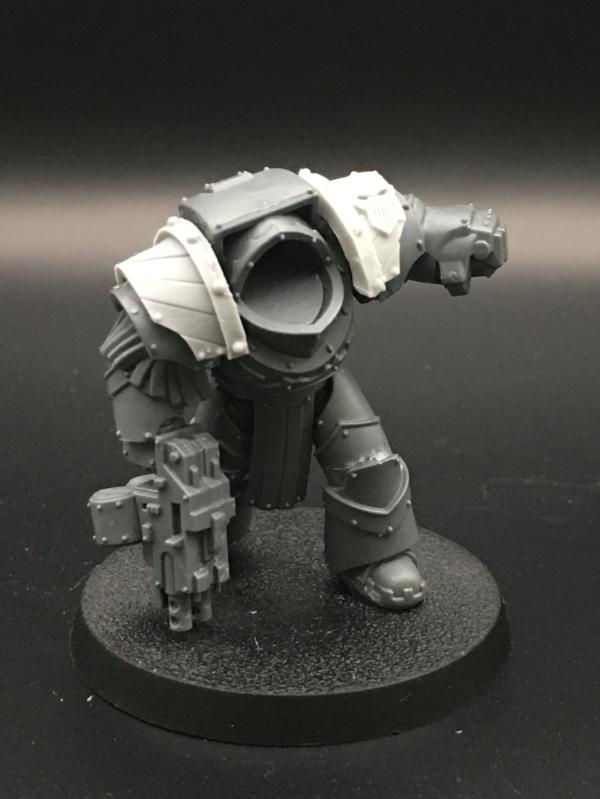 Updates, my Elysian commander's bolter has transitioned into a lasgun with auxiliary grenade launcher: