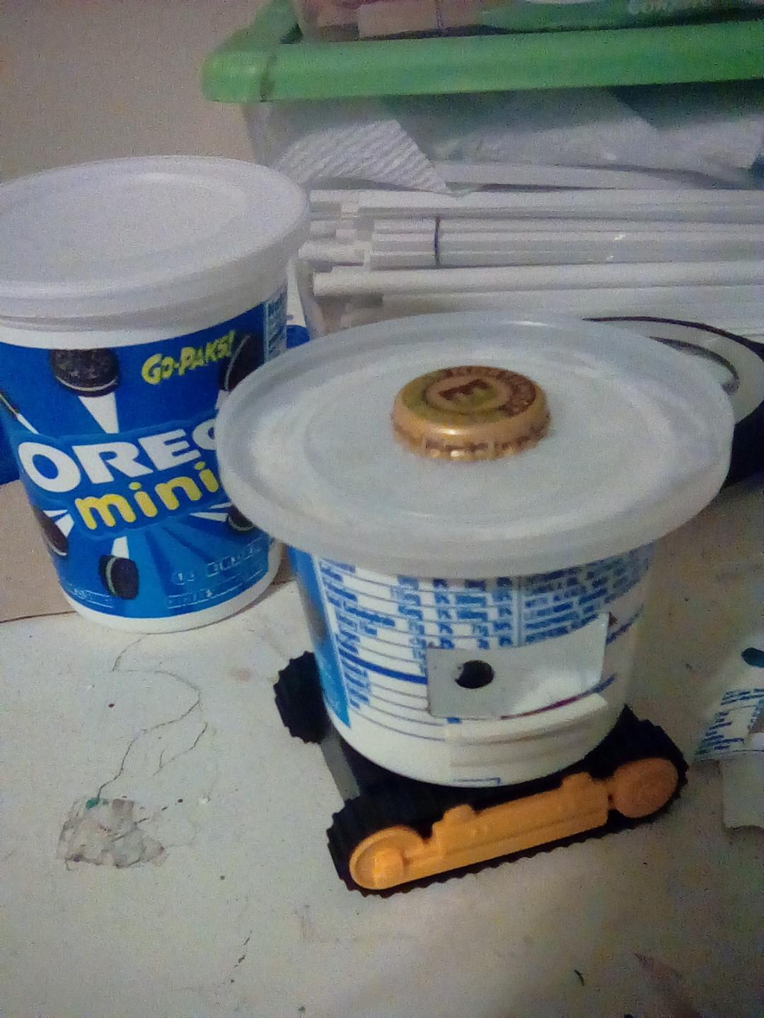 Oooh, or maybe the lid to one of the plastic gum tubs to act as a silo to go with...