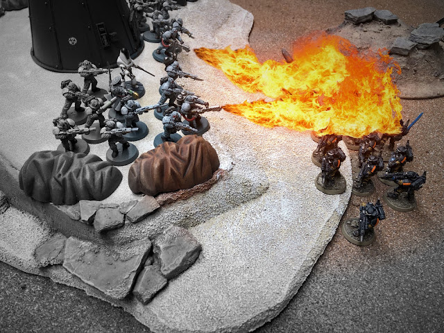 Gwyn - much appreciated. I probably spent too much time on it that could have been spent painting but to me, one of the major enjoyment of painting the models is to use them in games with fun stories/backgrounds using painted terrain and taking photos. The idea to add effects was stolen from Gordy2000 and his epic reports over the years. It just adds a bit more fun.