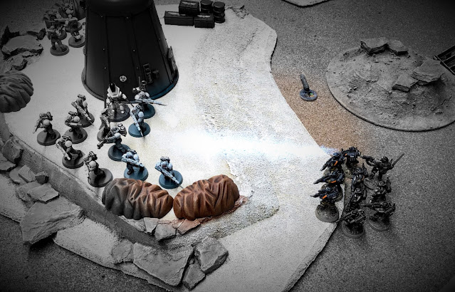 The infantry squad was able to drop right on top of the objective. The downside is that they were face to face with a tactical squad of Death Guard...
