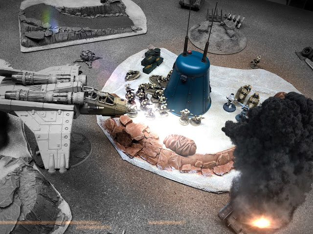 The poor, lowly guardsman. His lot in life seems to be to die by the dozen, while contesting an objective, slowing down or distracting an enemy, or maybe - rarely - killing an enemy. But it was quite a bit of fun to have them drop in and hit right on the objective. And the models looked good on the battlefield so that is always a win.
