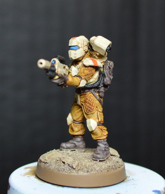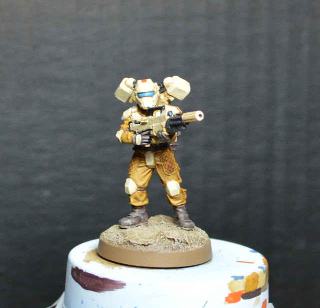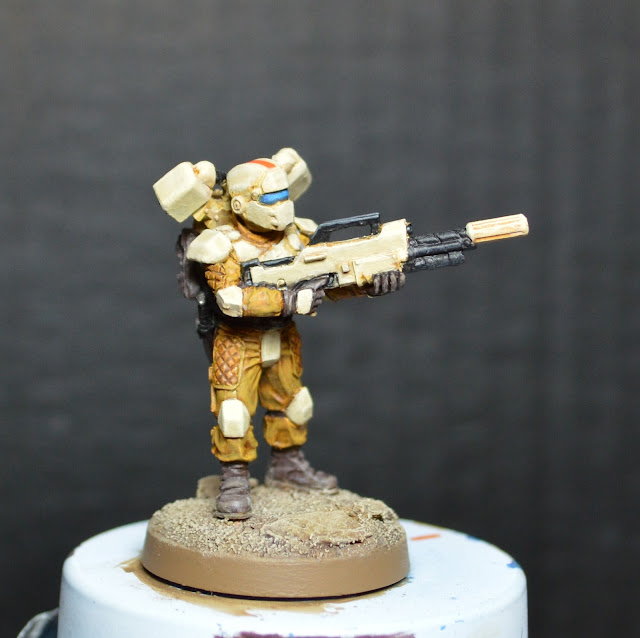 I liked the second model better. Not only did the sand undercoat help, but I also started the fatigues with XV-88 rather than starting with Balor Brown like I did on the first guy.
