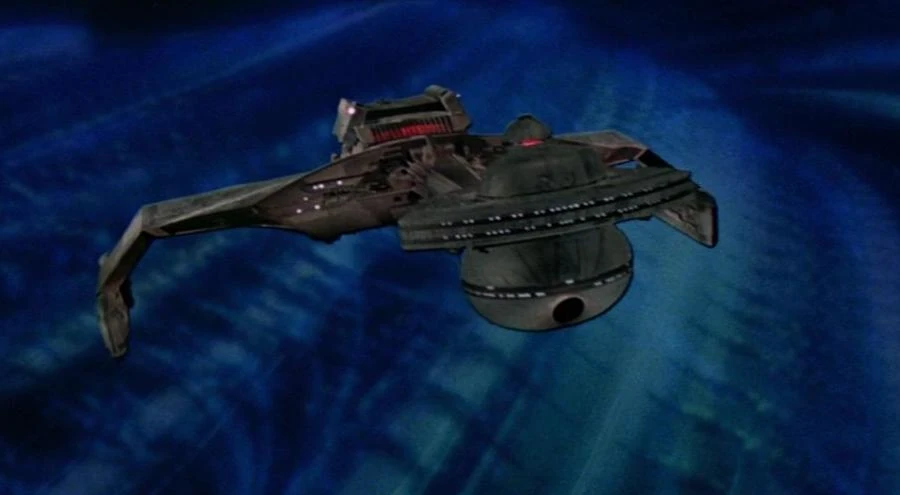 This ship is likely the result of battlefield scavenge from a previous war between the Klingons and the federation, or theft from old stockyards where ships were awaiting to be scrapped, in either case, she is a most wanted vessel with a list of charges against her and her crew.