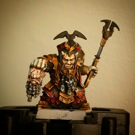 First time trying out skin colored contrast paint. Normally not that much into dwarves, but I enjoyed painting him more and more the longer I worked on him. One thing I learned: dry brushing is pretty difficult on such small models.....