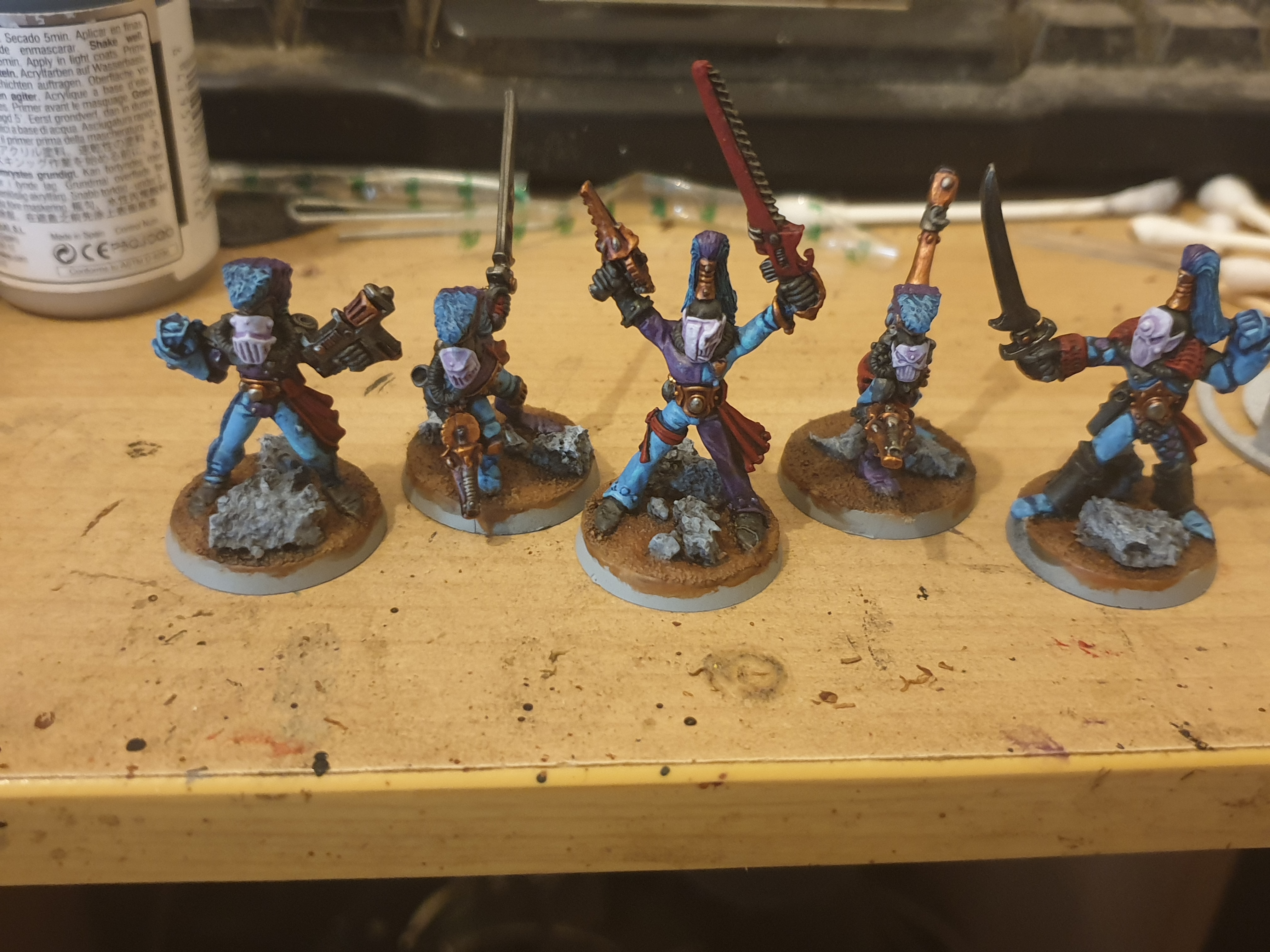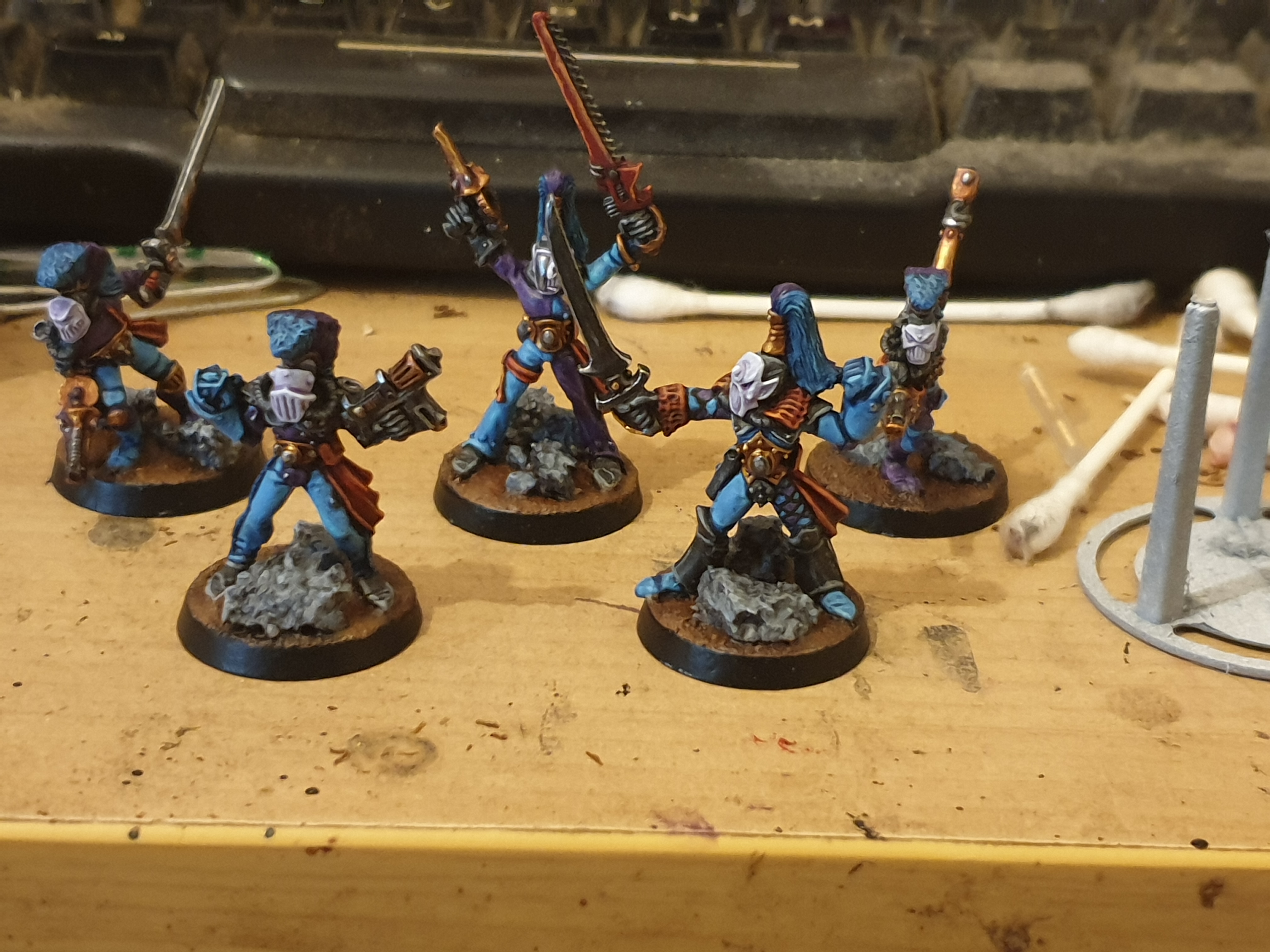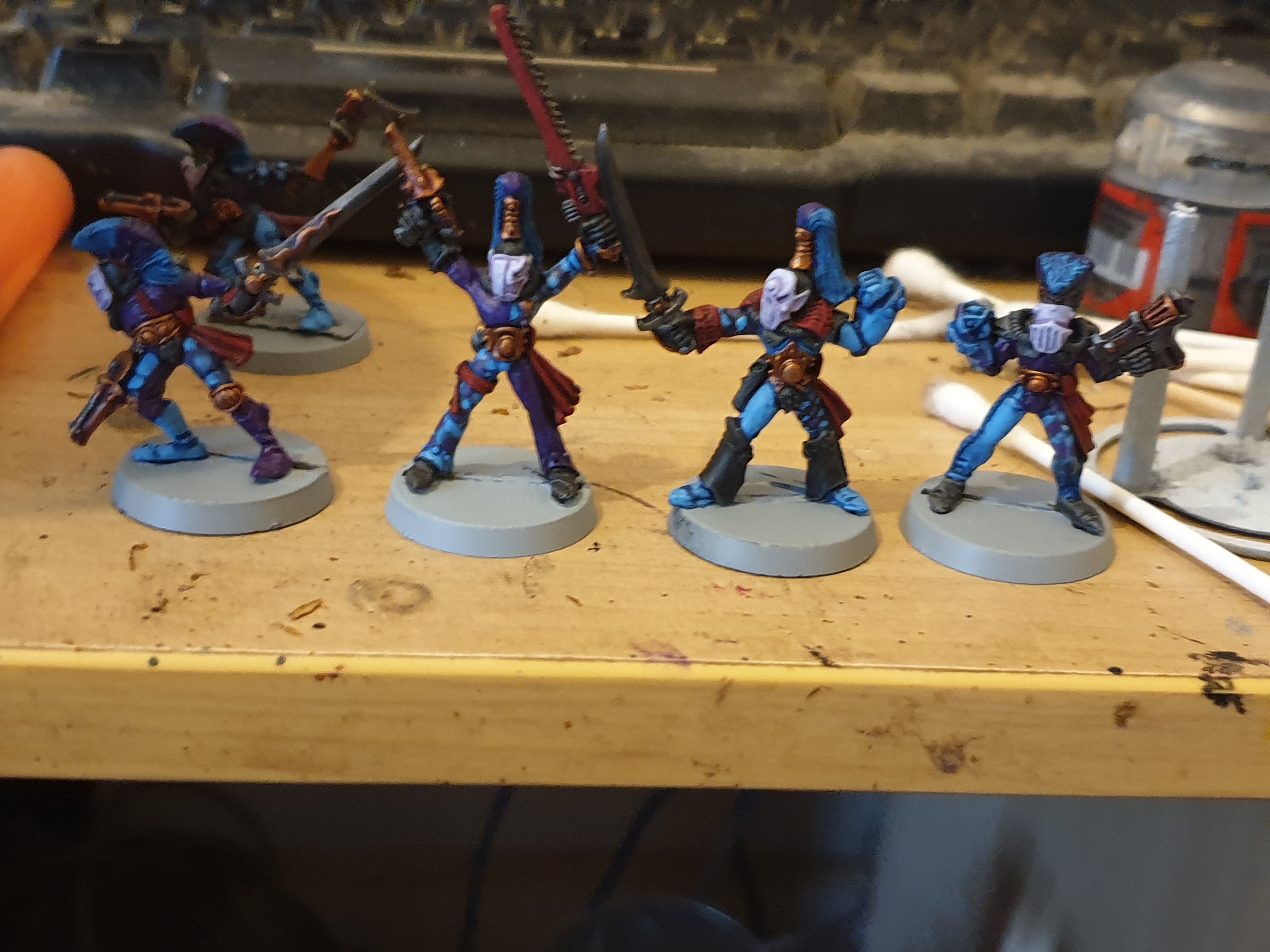 Here's my proof pic and a little progress pic too. Harlequins of the masque of the soaring spite. Pretty sure these are the oldest models I have, they are stamped 1988 but I bought them 3 or 4 years ago.