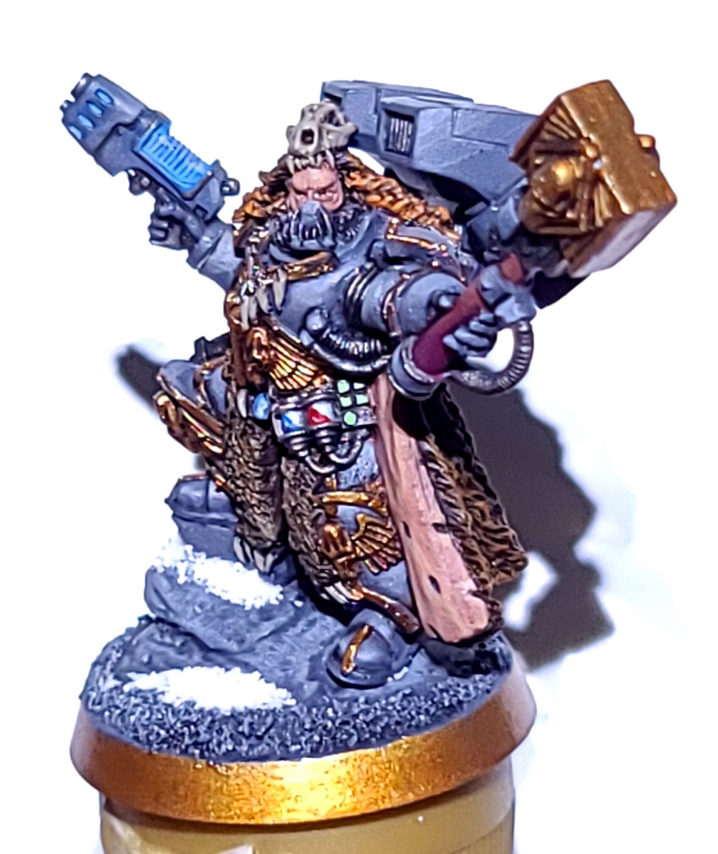 Just the gems left for me. Would really appreciate any suggestions for the colour of the one split mask. I have it prepped silver for gemstone paint of which I have all three, but also open to leaving it silver or doing it gold. What do you think?