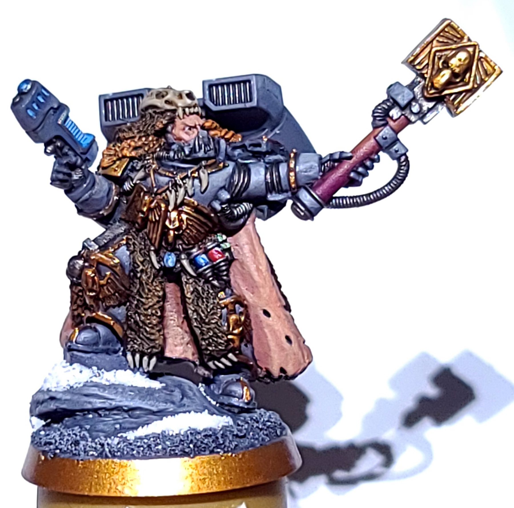 I wanted to give this guy a bit of an off feel to him, so the armour has been painted in reverse (light shadows and dark highlights) and i've matted down the metallics as much as I could so that they weren't shiny. The leather is the only thing that's "normal".