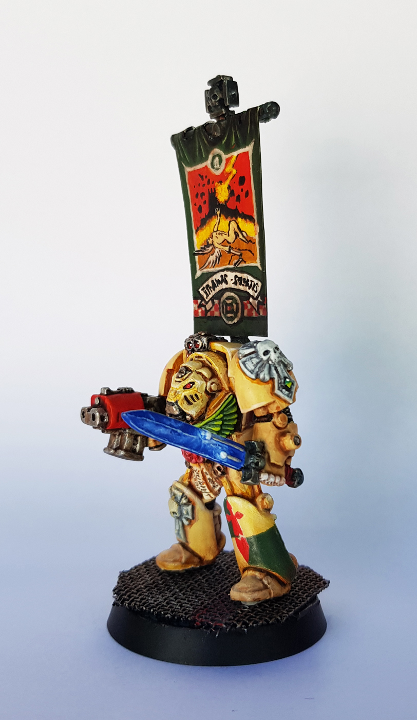 Let’s call that done. More old school from the back of the bench. all have probably done time in the Blood Angels. I know both the metals for sure, and the plastics are a mix of two old forces, stripped broken down and rebuilt. So probably a little BA in there. First real try at a tattoo. Think it turned out pretty good. Old and worn, just the the marine who wears it.