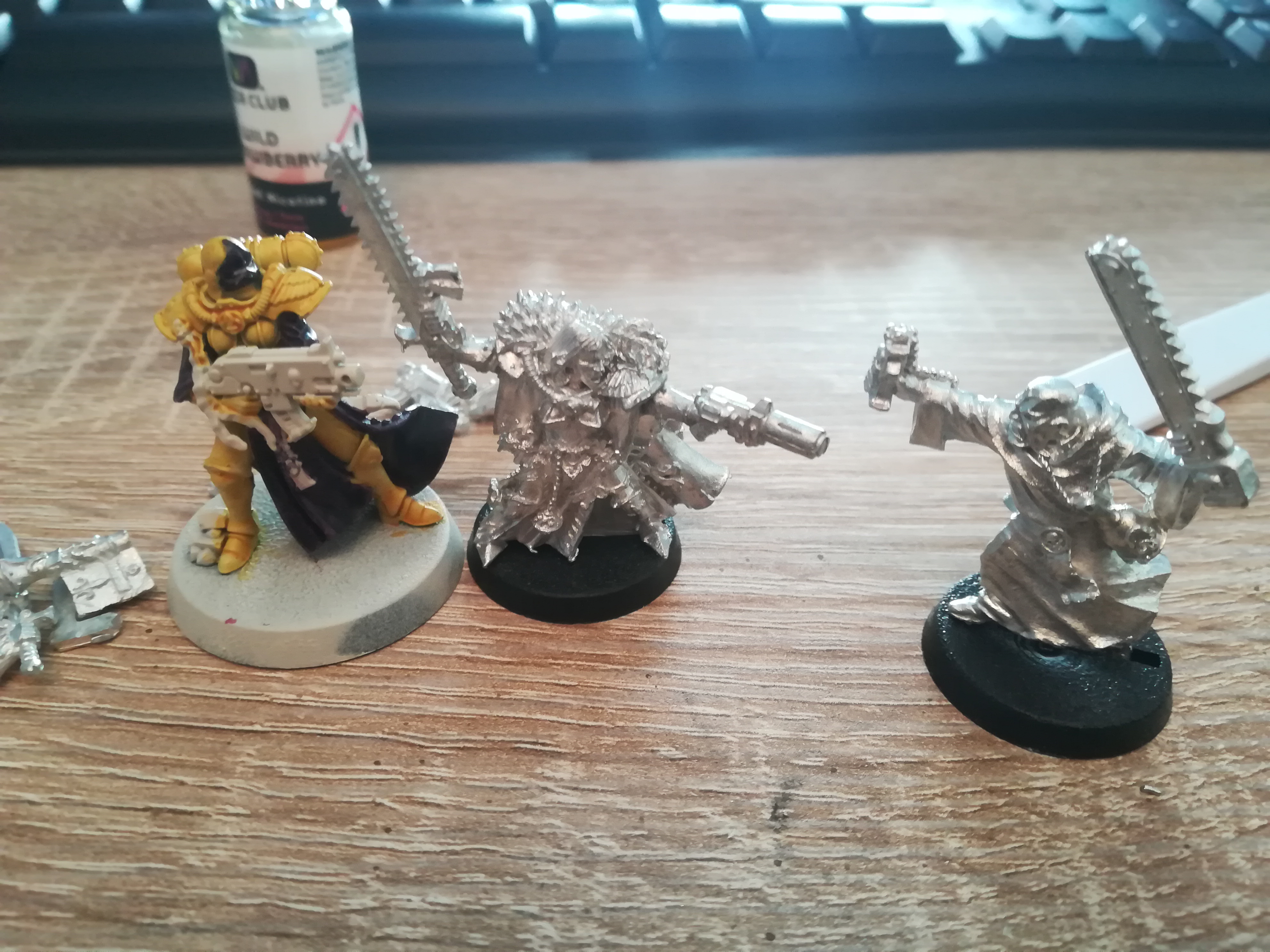 I think there's another dive into the cardboard archive before I commit, but these two groups are the frontrunners right now. One is classic Arbites, the other is mostly 2nd ed. "guard" and "adventurers" with the model from the Chainsaw Warrior game in the mix. Who knows, maybe I do both and choose later?