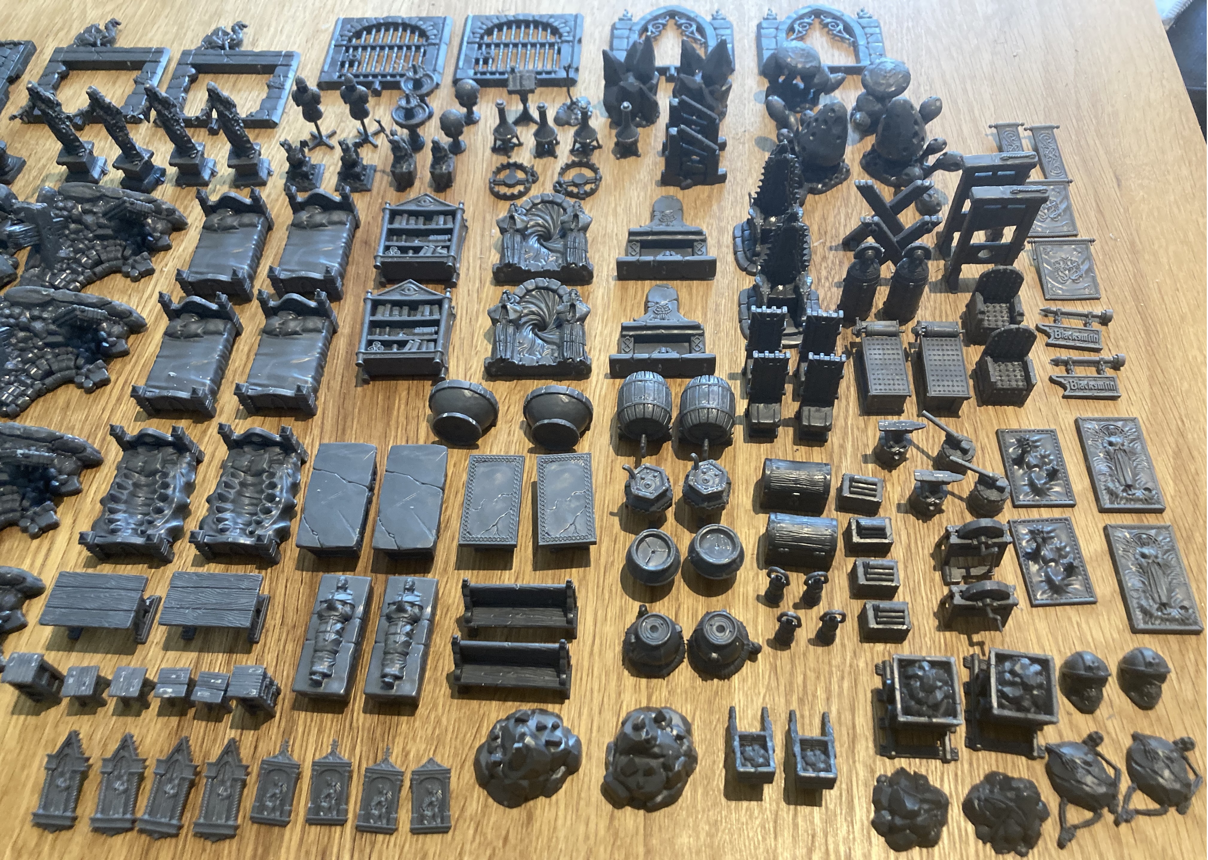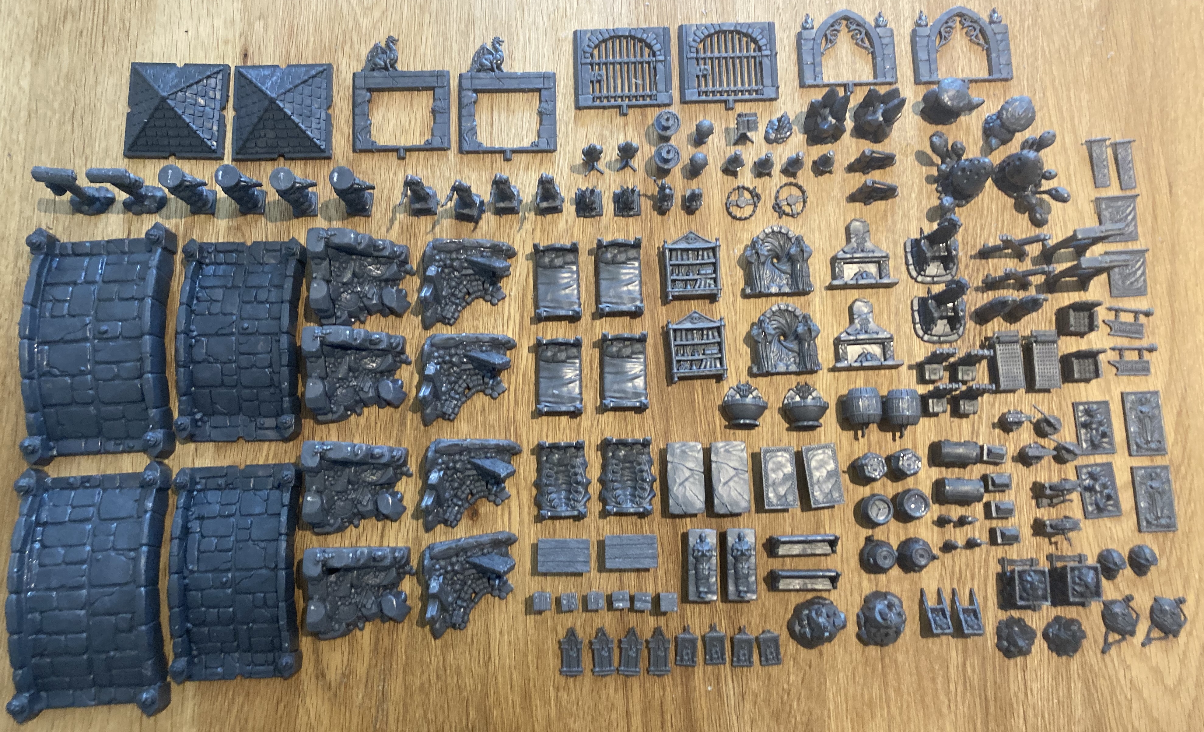 I've clipped a fantasy core box worth for a project that got sidelined for a while. I still have 3 more core boxes but I might save it all up to mix with Woodhaven, use the fantasy walls for the lower parts of buildings so as to make the new rooms go further. I may set up some of the doors to use with Cursed City to replace card tokens I just need to make some bases for them to clip into.